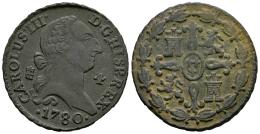 Carlos III (1759-1788). 4 maravedís. 1780. Segovia. (Cal-60). Ae. 512,00 g. MBC. Est...30,00.