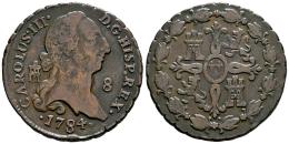 Carlos III (1759-1788). 8 maravedís. 1784. Segovia. (Cal-80). Ae. 11,52 g. MBC-. Est...25,00.
