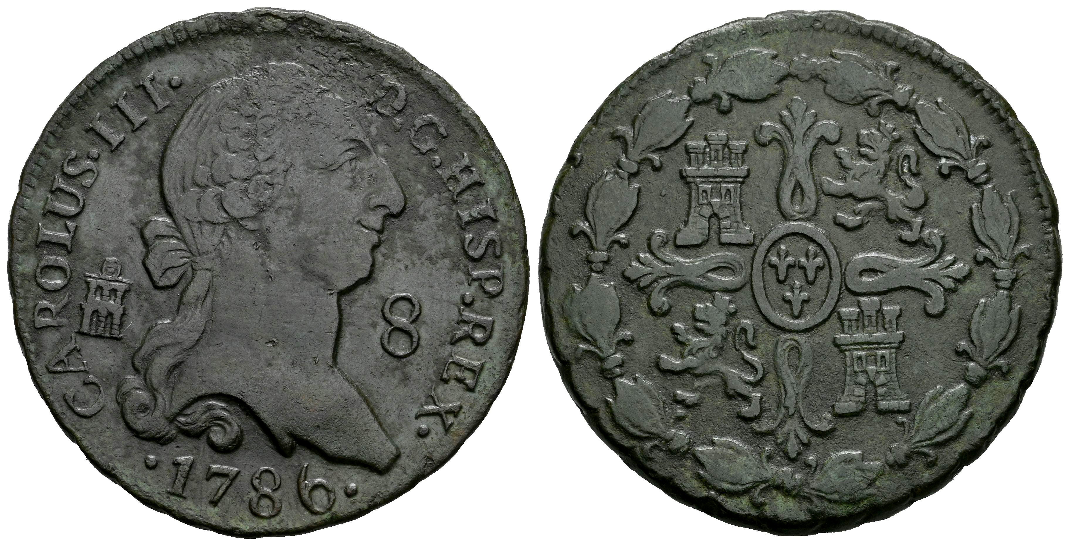 Carlos III (1759-1788). 8 maravedís. 1786. Segovia. (Cal-82). Ae. 11,35 g. Leves oxidaciones. MBC. Est...60,00.