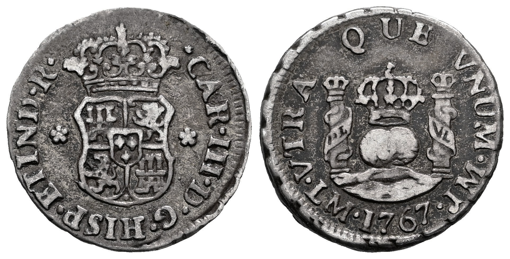 Carlos III (1759-1788). 1/2 real. 1767. Lima. JM. (Cal-120). Ag. 1,64 g. Ligera pátina. MBC-. Est...60,00.