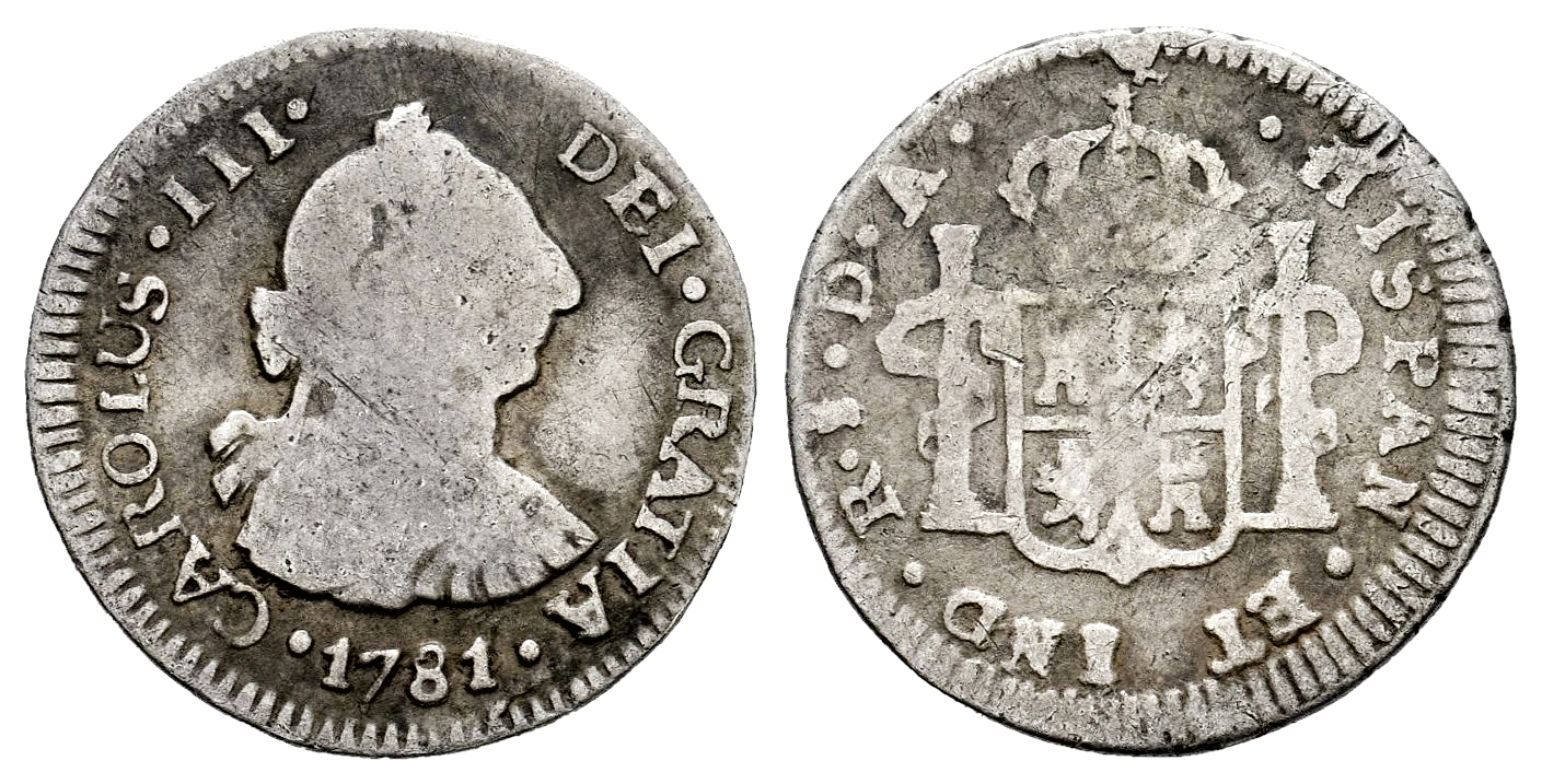 Carlos III (1759-1788). 1/2 real. 1781. Santiago. DA. (Cal-290). Ag. 1,45 g. Muy rara, pocos ejemplares conocidos. BC. Est...100,00.