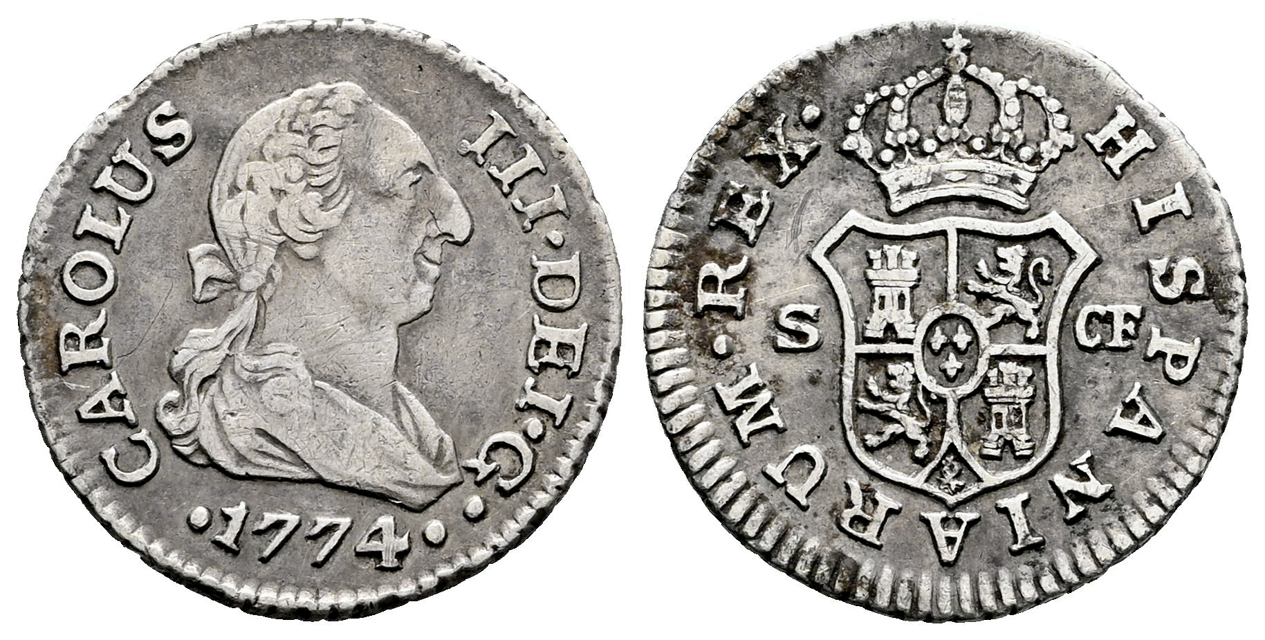 Carlos III (1759-1788). 1/2 real. 1774. Sevilla. CF. (Cal-312). Ag. 1,39 g. MBC. Est...50,00.