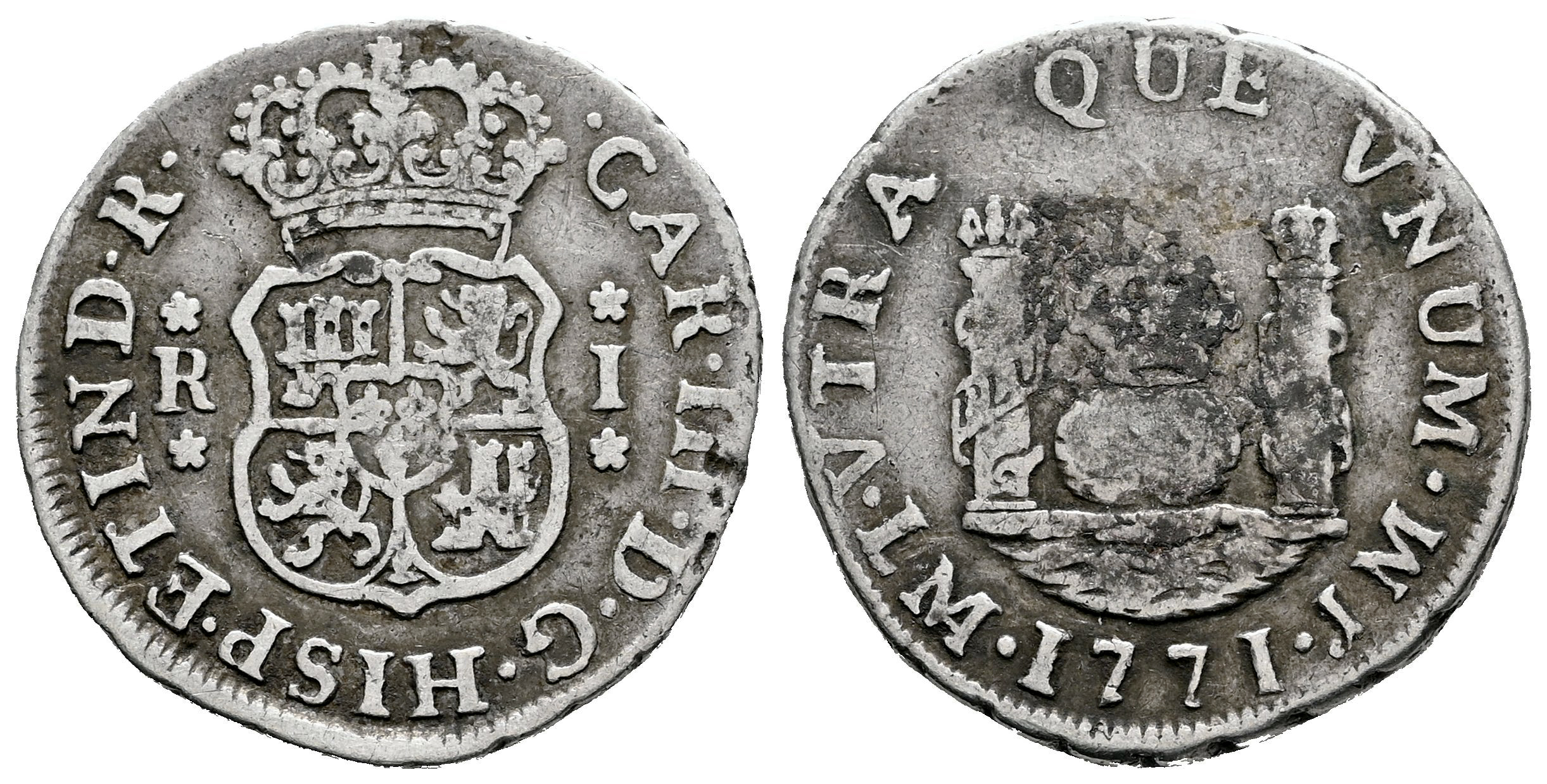 Carlos III (1759-1788). 1 real. 1771. Lima. JM. (Cal-354). Ag. 3,29 g. MBC-. Est...45,00.