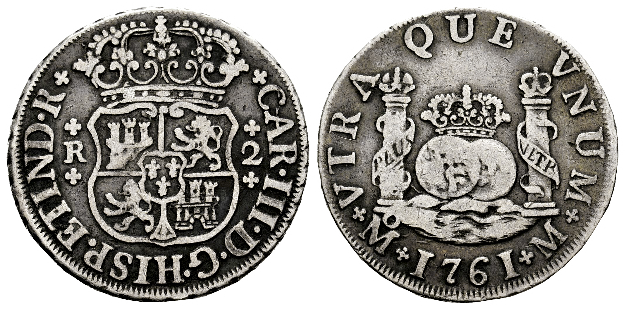 Carlos III (1759-1788). 2 reales. 1761. México. M. (Cal-643). Ag. 6,60 g. MBC-. Est...100,00.