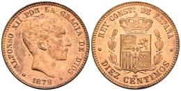 Centenario de la Peseta (1868-1931). Alfonso XII (1874-1885). 10 céntimos. 1878. Barcelona. OM. (Cal-9). Ae. 10,35 g. Brillo original. EBC. Est...90,00.