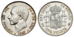 Centenario de la Peseta (1868-1931). Alfonso XII (1874-1885). 1 peseta. 1883*_ _-83. Madrid. MSM. (Cal-21). Ag. 5,05 g. Restos de brillo original. EBC-/EBC. Est...150,00.