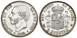 Centenario de la Peseta (1868-1931). Alfonso XII (1874-1885). 2 pesetas. 1882*18-82. Madrid. MSM. (Cal-32). Ag. 10,05 g. Suave limpieza. Ínfimos golpecitos en el canto. Resos de brillo original. Escasa así. SC-. Est...200,00.
