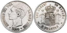 Centenario de la Peseta (1868-1931). Alfonso XII (1874-1885). 5 pesetas. 1878*18-78. Madrid. EMM. (Cal-41). Ag. 25,07 g. Restos de brillo original. Limpiada. EBC-/EBC. Est...200,00.