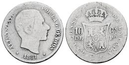 Centenario de la Peseta (1868-1931). Alfonso XII (1874-1885). 10 centavos. 1881. Manila. (Cal-94). Ag. 2,30 g. BC-. Est...25,00.
