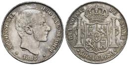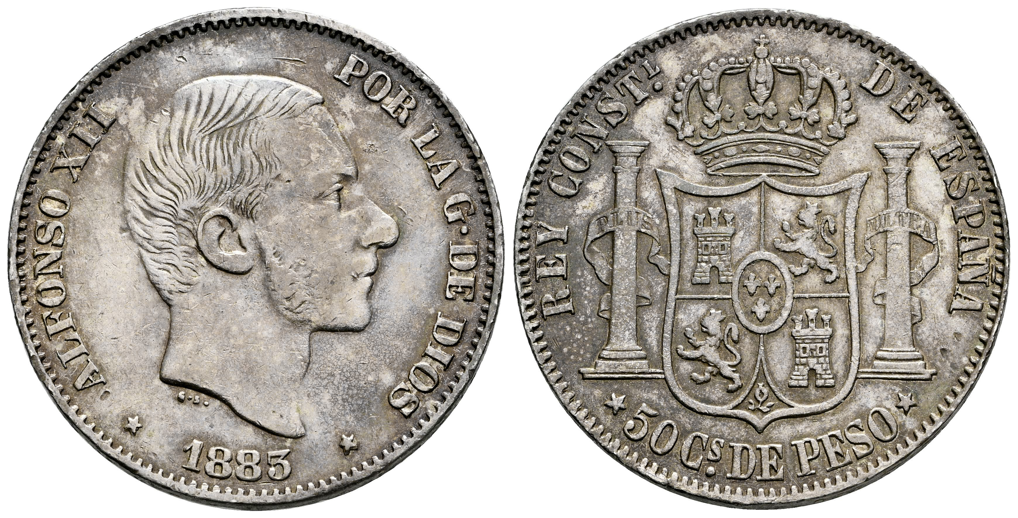 Centenario de la Peseta (1868-1931). Alfonso XII (1874-1885). 50 centavos. 1883. Manila. (Cal-120). Ag. 12,82 g. Tono. MBC+/EBC-. Est...75,00.