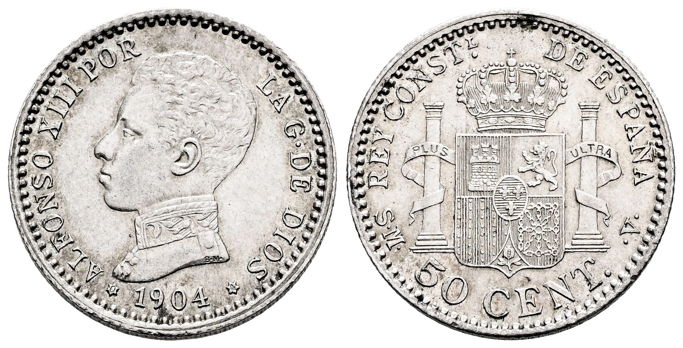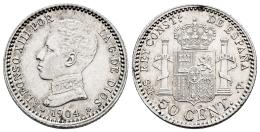Centenario de la Peseta (1868-1931). Alfonso XIII (1886-1931). 50 céntimos. 1904*0-4. Madrid. SMV. (Cal-46). Ag. 2,54 g. Restos de brillo original. EBC+. Est...25,00.