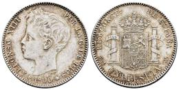 Centenario de la Peseta (1868-1931). Alfonso XIII (1886-1931). 1 peseta. 1900*19-00. Madrid. SMV. (Cal-59). Ag. 5,01 g. Segunda estrella tenue. Brillo original. EBC. Est...50,00.