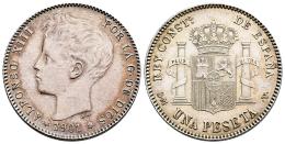 Centenario de la Peseta (1868-1931). Alfonso XIII (1886-1931). 1 peseta. 1901*19-01. Madrid. SMV. (Cal-60). Ag. 5,05 g. Tono en anverso. Ligeramente limpiada. EBC. Est...60,00.