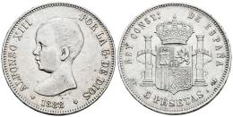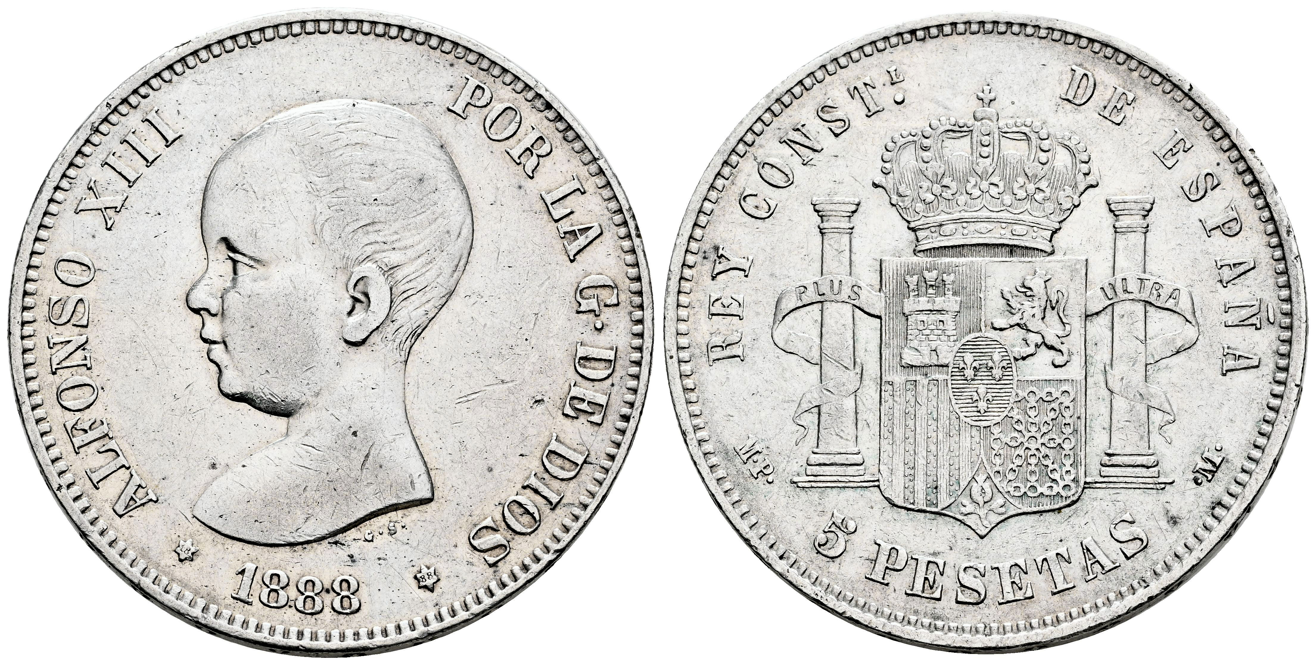 Centenario de la Peseta (1868-1931). Alfonso XIII (1886-1931). 5 pesetas. 1888*18-88. Madrid. MPM. (Cal-92). Ag. 24,94 g. Limpiada. MBC. Est...45,00.