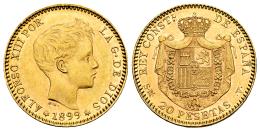 Centenario de la Peseta (1868-1931). Alfonso XIII (1886-1931). 20 pesetas. 1899*18-99. Madrid. SMV. (Cal-116). Au. 6,44 g. Brillo original. EBC+. Est...600,00.