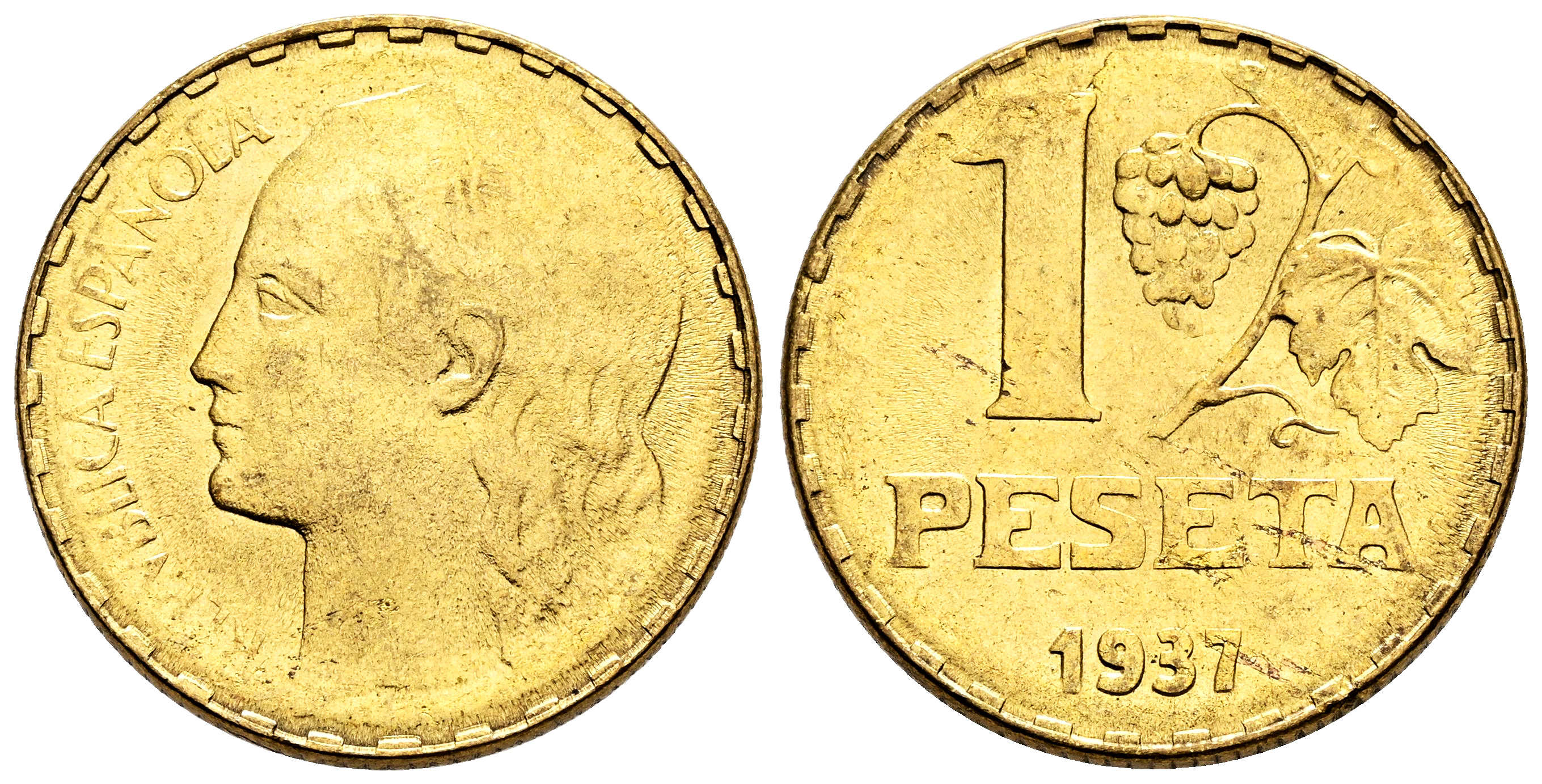 II República (1931-1939). 1 peseta. 1937. Madrid. (Cal-41). La. 5,05 g. SC-. Est...60,00.