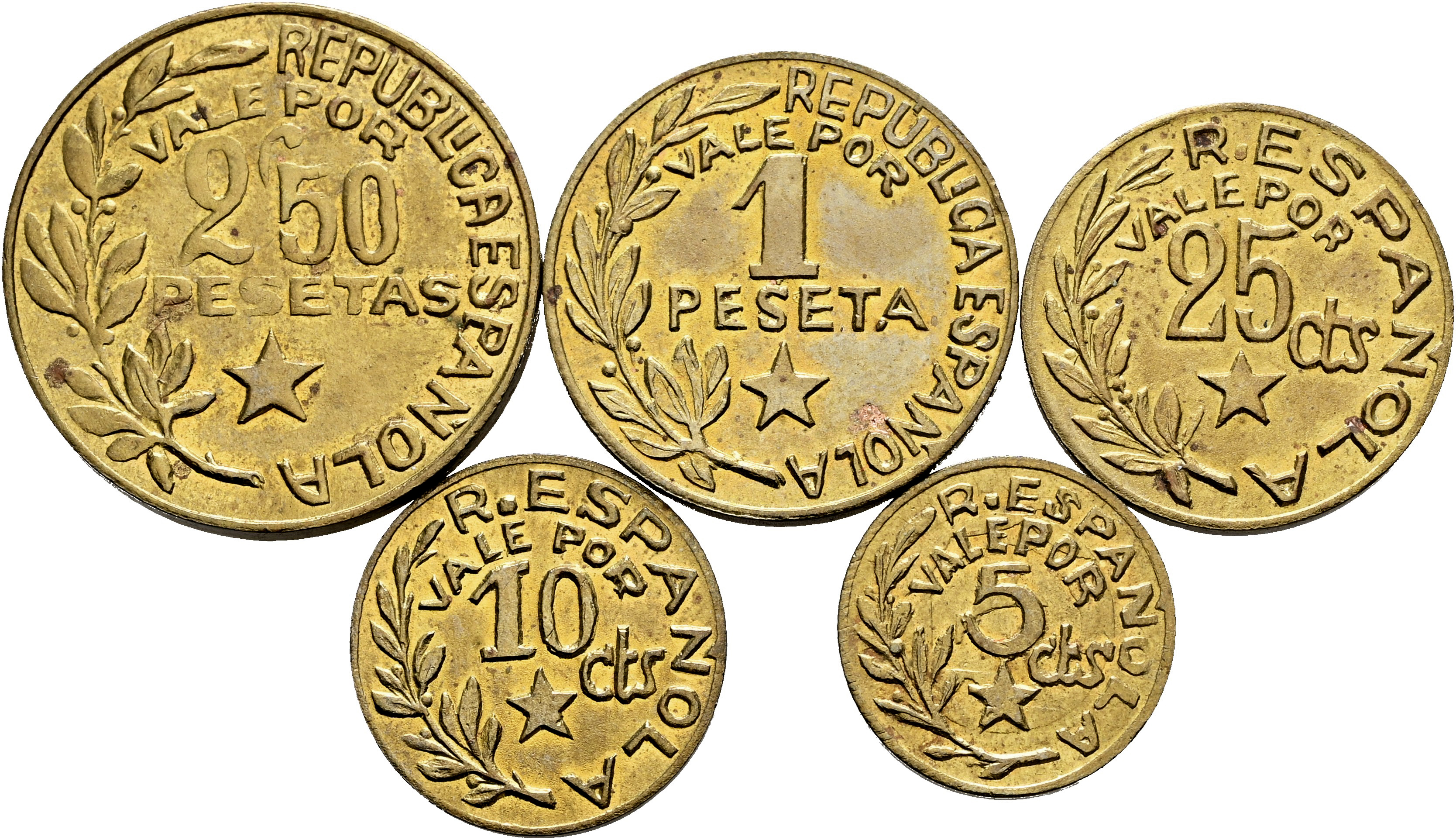 Guerra Civil (1936-1939). Serie completa de 5 valores. 1937. Menorca. (Cal-20/24). Ae. Escasa en esta conservación. EBC/EBC+. Est...150,00.