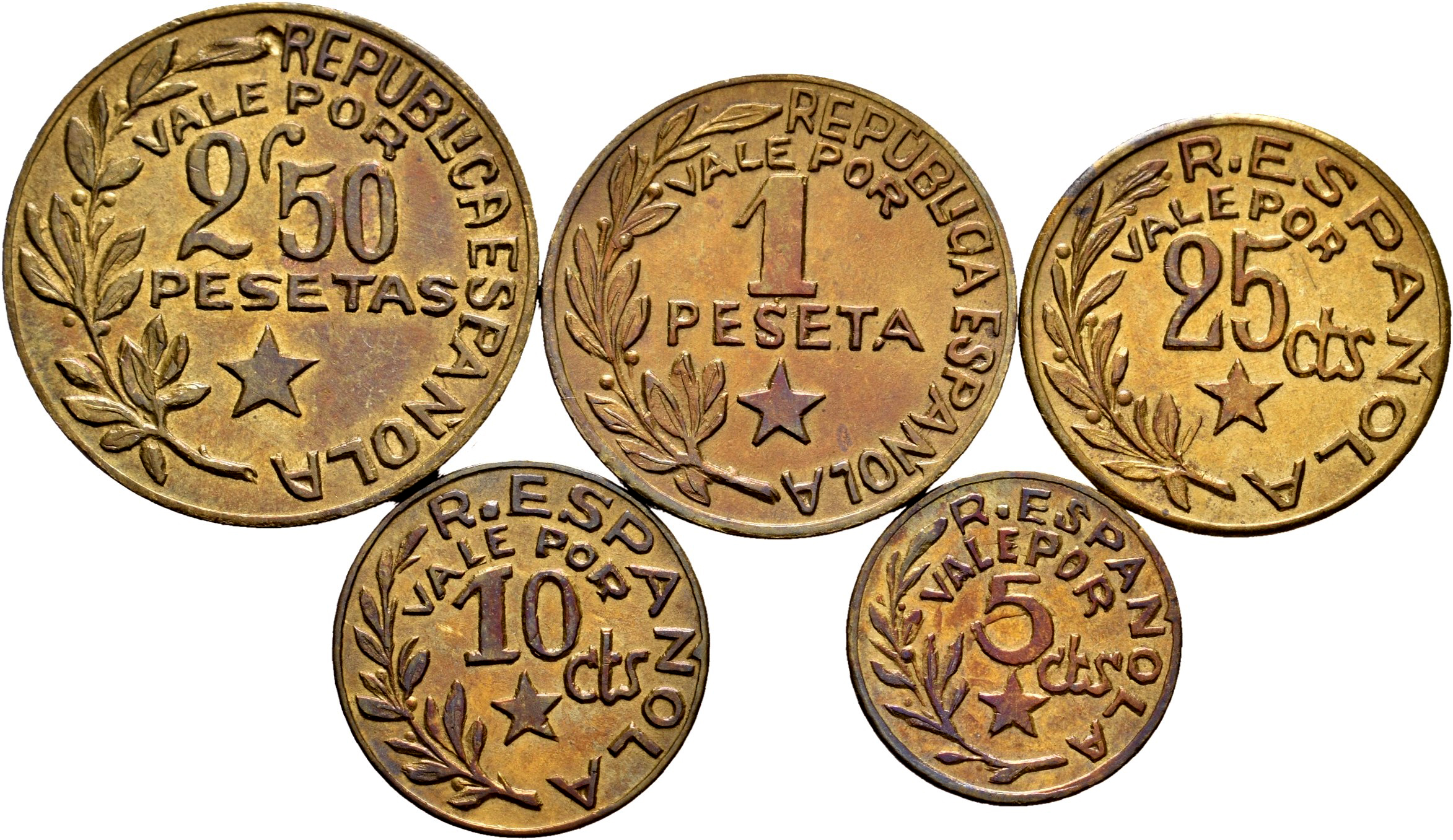 Guerra Civil (1936-1939). Serie completa de 5 valores. 1937. Menorca. (Cal-20/24). Escasa en esta conservación. EBC/EBC+. Est...200,00.