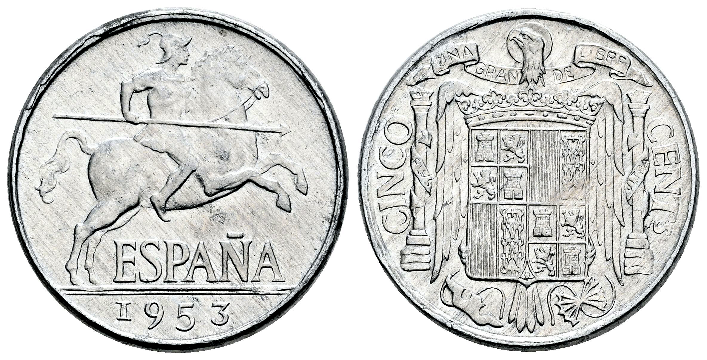 Estado Español (1936-1975). 5 céntimos. 1953. Madrid. (Cal-4). Al. 1,16 g. Brillo original. SC. Est...100,00.