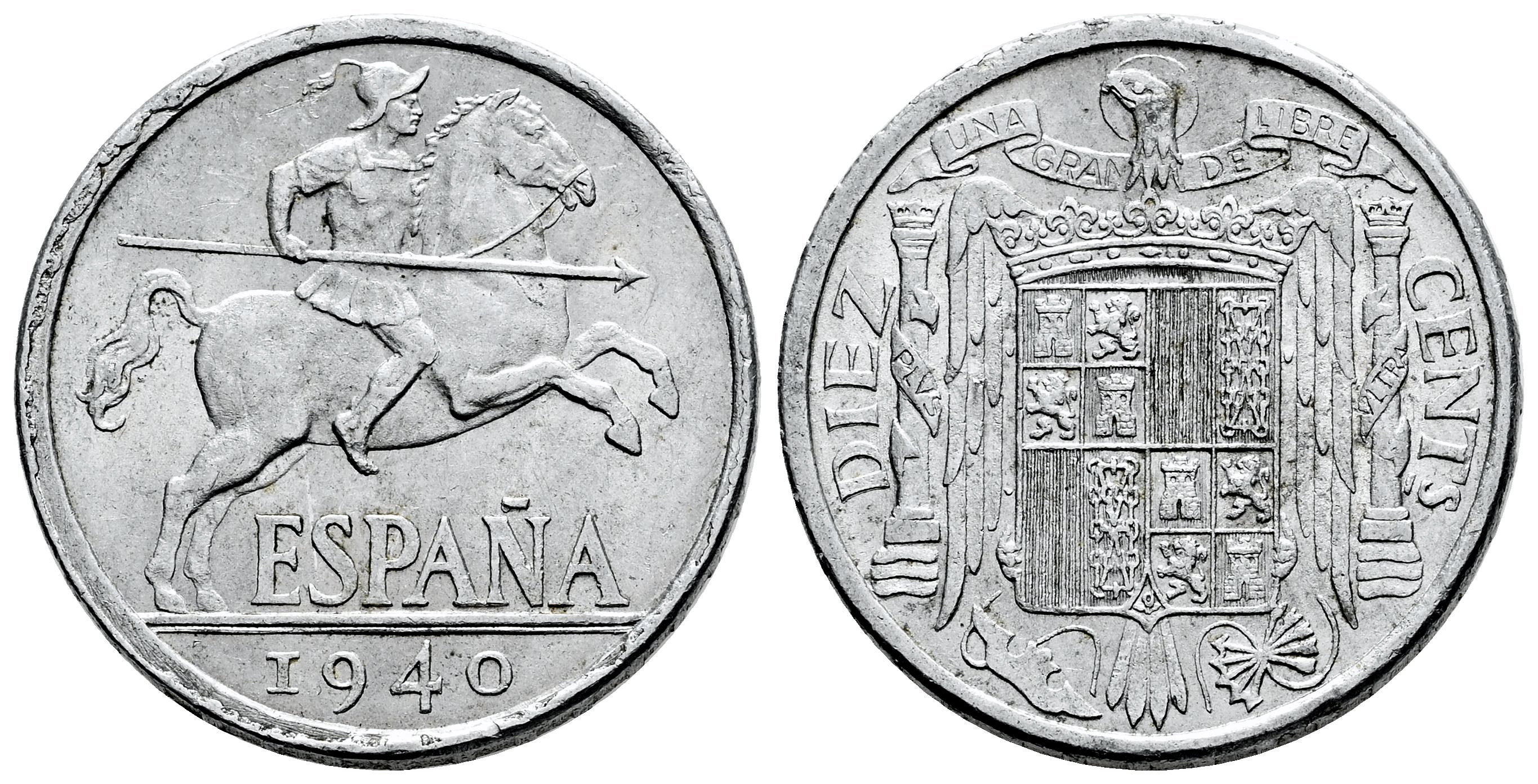 Estado Español (1936-1975). 10 céntimos. 1940. Madrid. (Cal-6). Al. 1,86 g. PLVS. EBC+. Est...70,00.