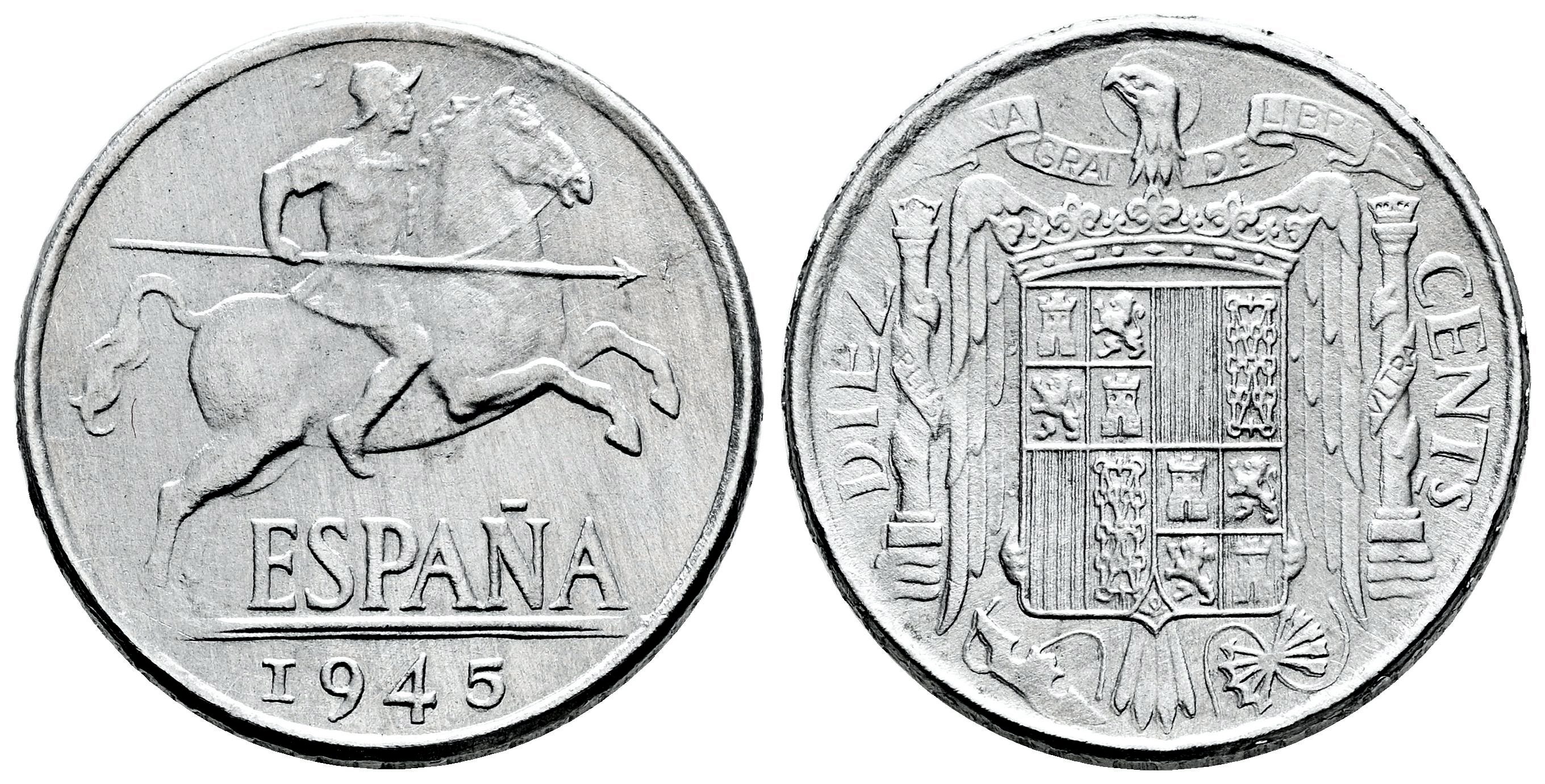 Estado Español (1936-1975). 10 céntimos. 1945. Madrid. (Cal-11). Al. 1,83 g. EBC+. Est...15,00.