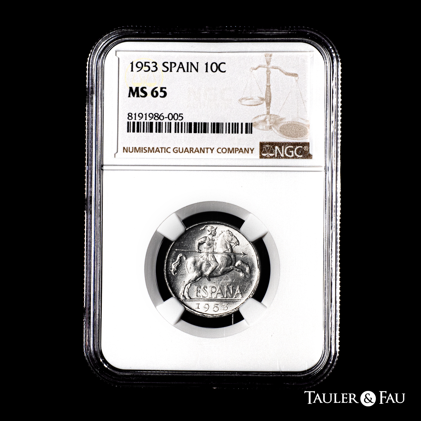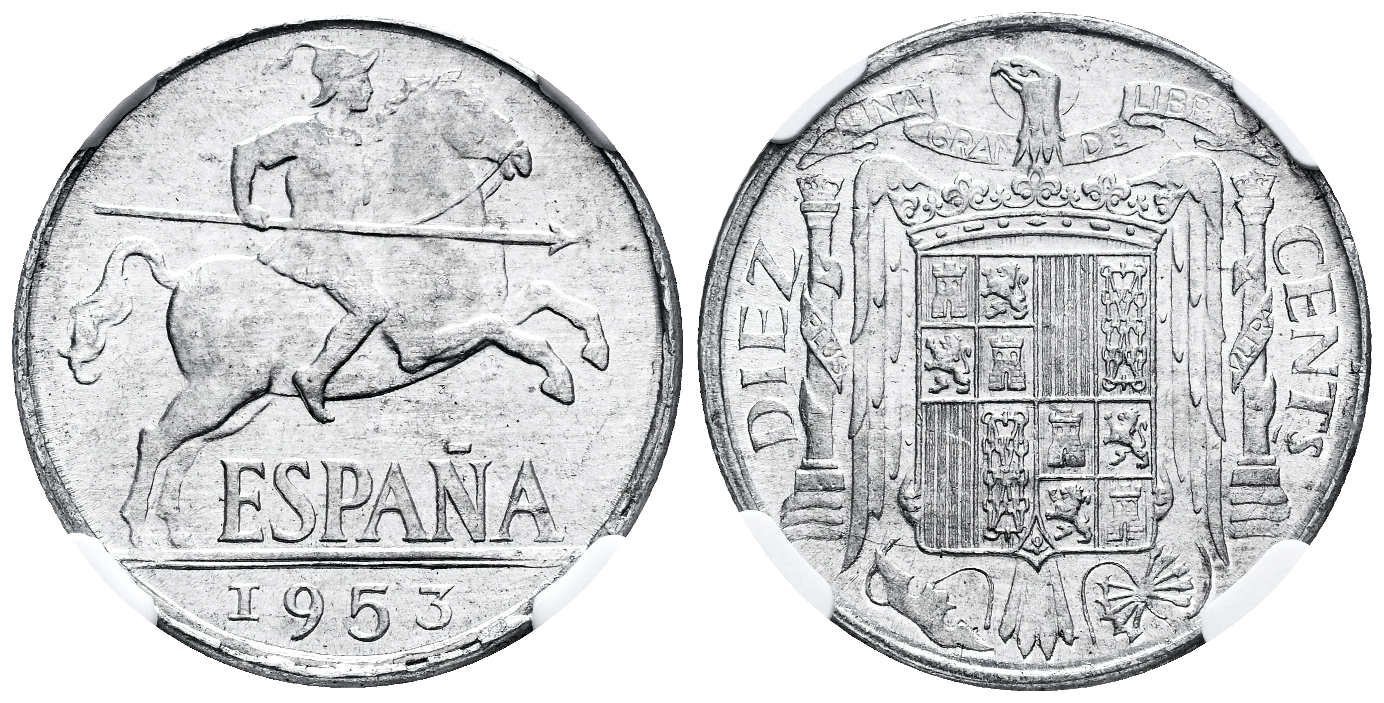 Estado Español (1936-1975). 10 céntimos. 1953. Madrid. (Cal-12). Al. Encapsulada por NGC como MS 65. Est...90,00.