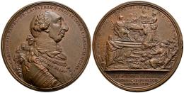 Carlos III (1759-1788). Medalla. 1778. (Vq-14126). (Villena-139). (Vives-52). Ae. 105,10 g. Premio de la Academia de Derecho Español y Público. Su busto acorazado con los collares del Toisón y de la Carlos III y GIL junto a la coleta. La Ley, la Fama y la Justicia en una mesa con libros y otros personajes en el primer plano. A la izda. Mo y en el centro G-A-Gil. Grabador: Gerónimo Antonio Gil. 59 mm. Golpes en el canto. MBC+. Est...170,00.