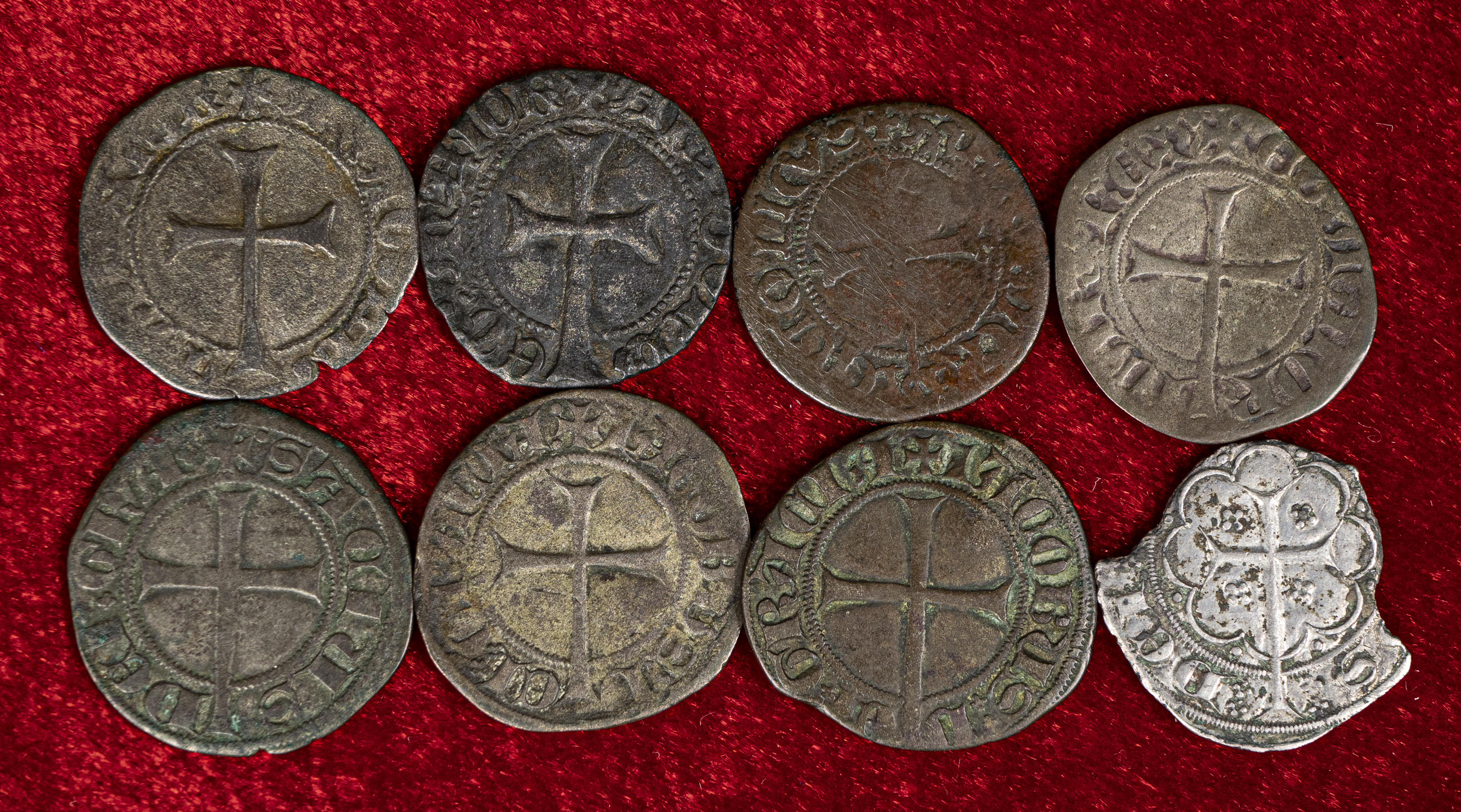 Lote de 8 monedas medievales de Mallorca, incluye 1/2 real de plata de Jaime II de Mallorca con el cospel faltado. Interesante. Es imprescindible un riguroso examen. SOLO ENVÍO A ESPAÑA PENÍNSULA. NO SE ADMITE DEVOLUCIÓN. BC/MBC-. Est...400,00.