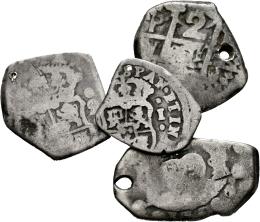 Lote de 4 monedas de Monarquía española. Conteniendo 3 monedas de 2 Reales de Guatemala-Potosí y 1 Real de Guatemala. Todas con perforaciones. Muy interesantes. Ag. Es imprescindible un riguroso examen. SOLO ENVÍO A ESPAÑA PENÍNSULA. NO SE ADMITE DEVOLUCIÓN. BC-/BC+. Est...160,00.