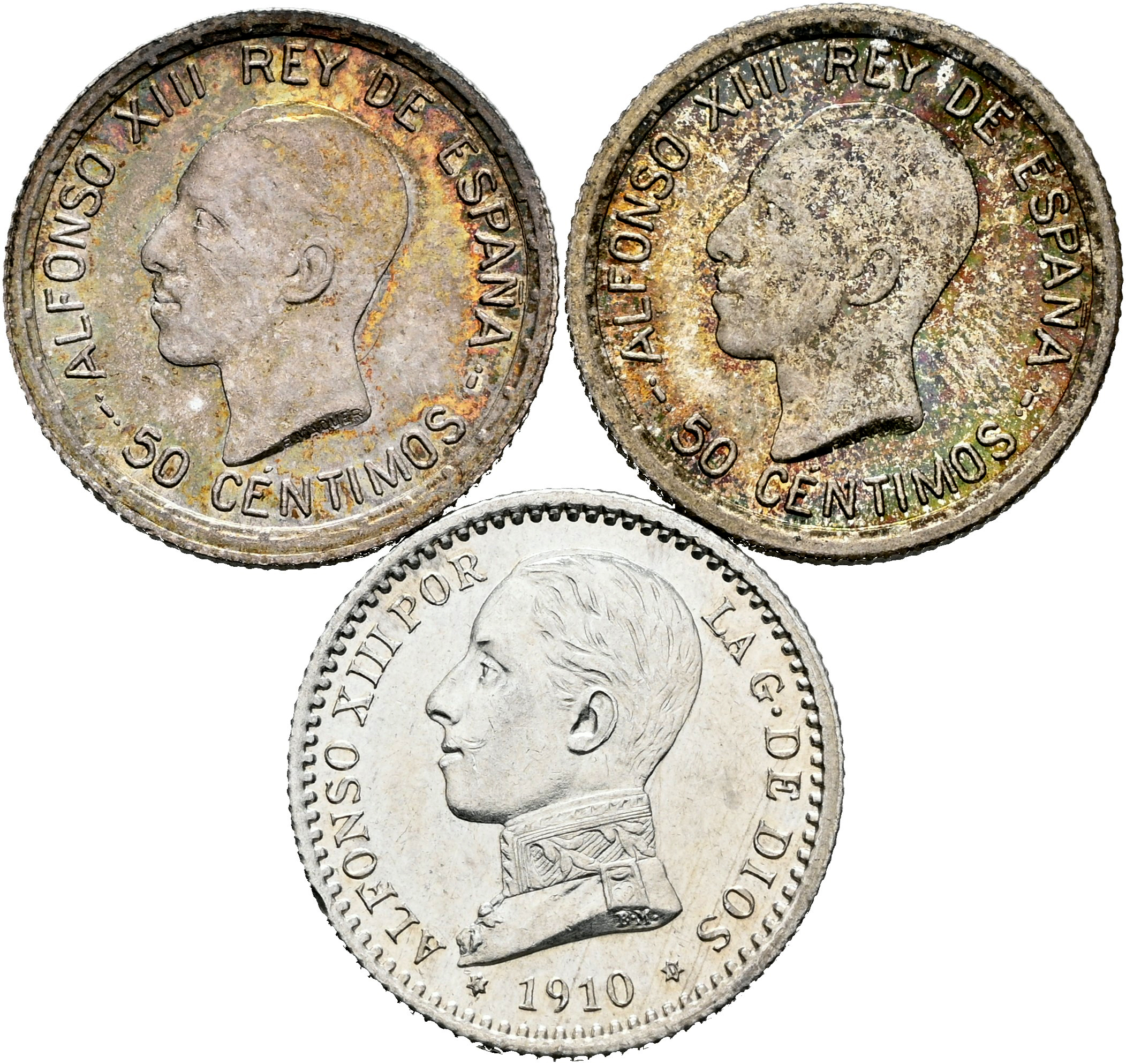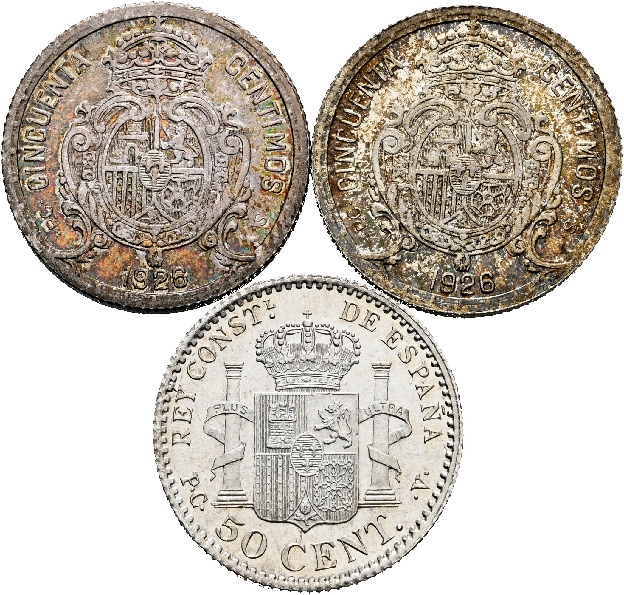Lote de 3 piezas de 50 céntimos de plata Alfonso XIII, 1910, 1926 (2). Es imprescindible un riguroso examen. SOLO ENVÍO A ESPAÑA PENÍNSULA. NO SE ADMITE DEVOLUCIÓN. EBC+/SC-. Est...45,00.