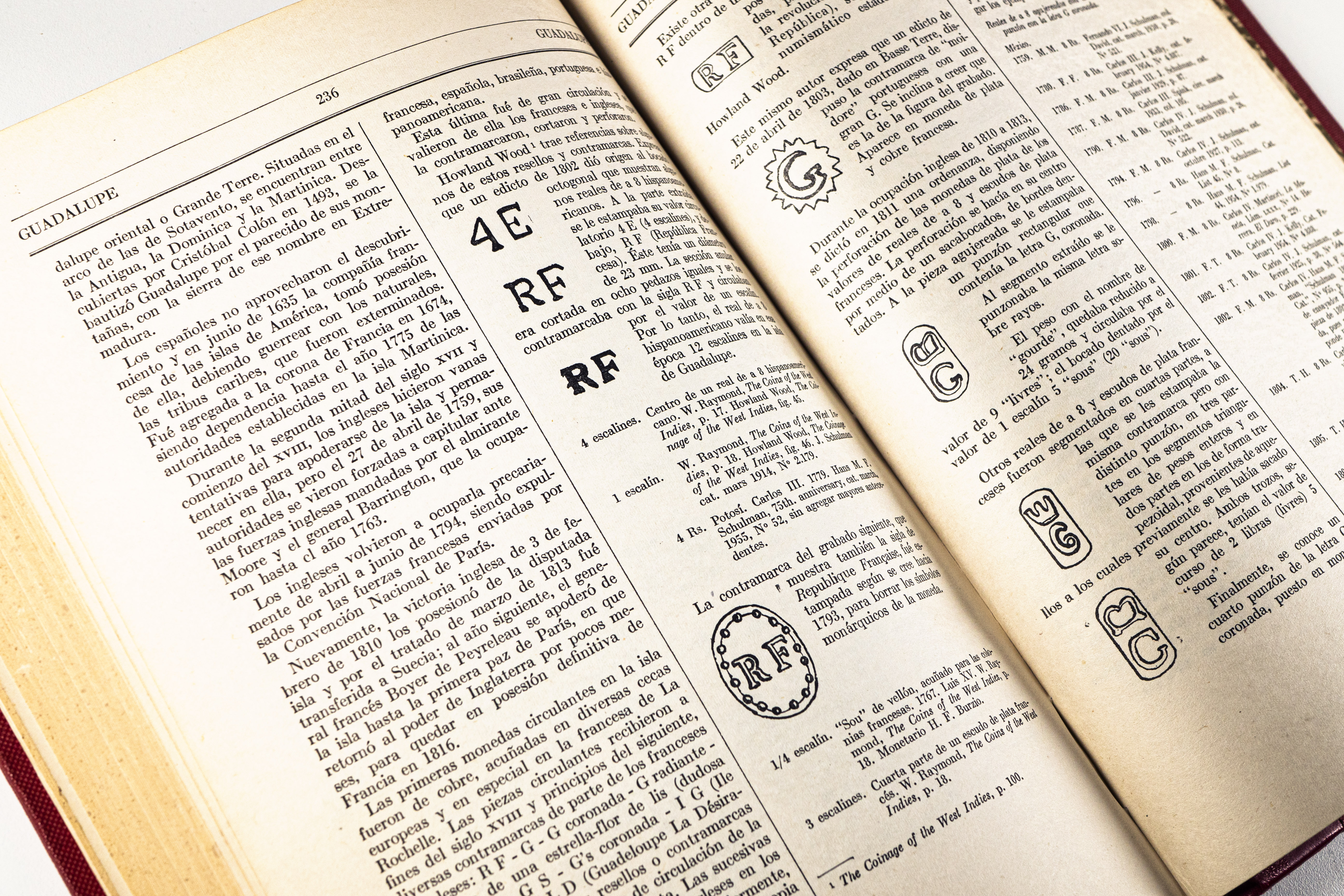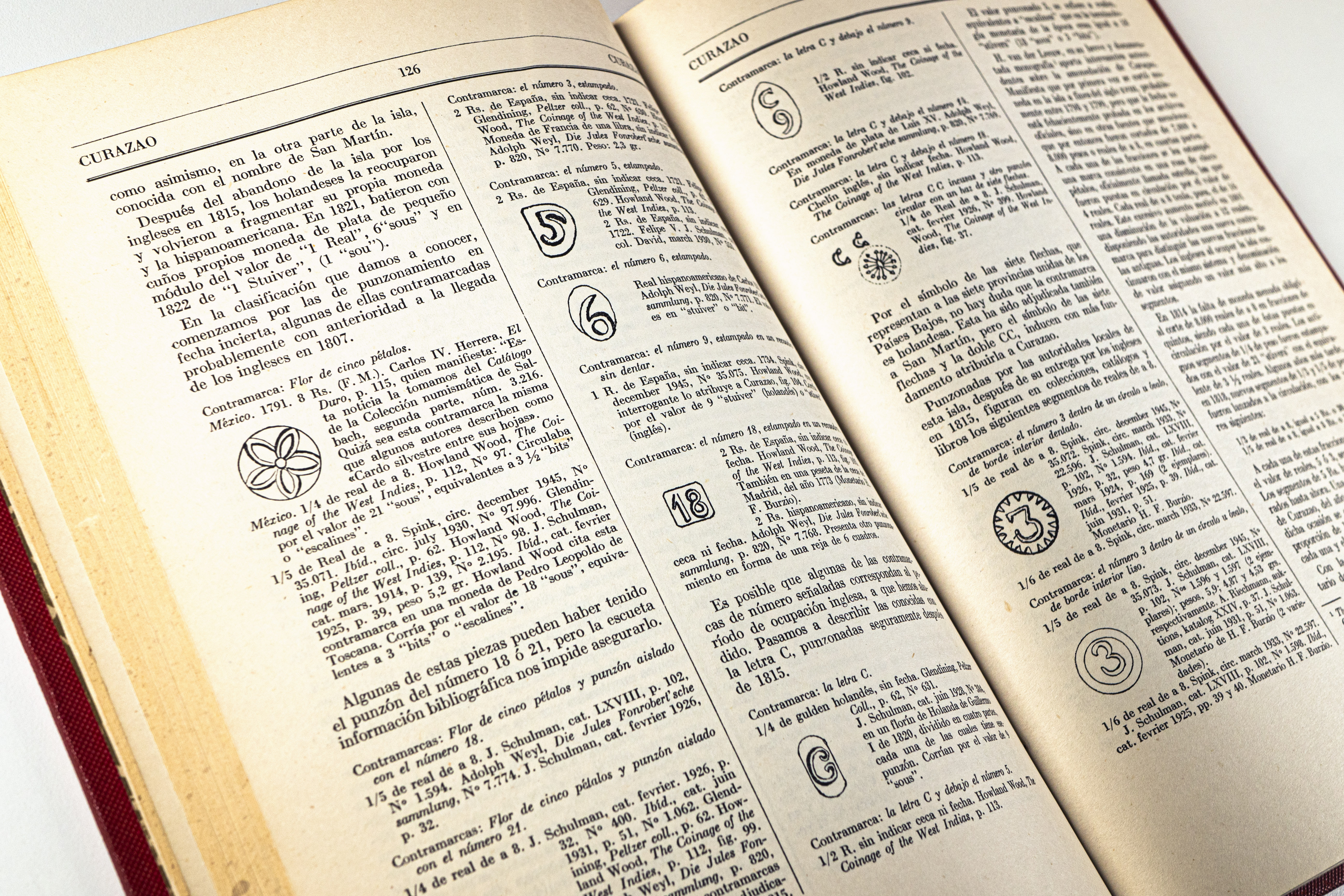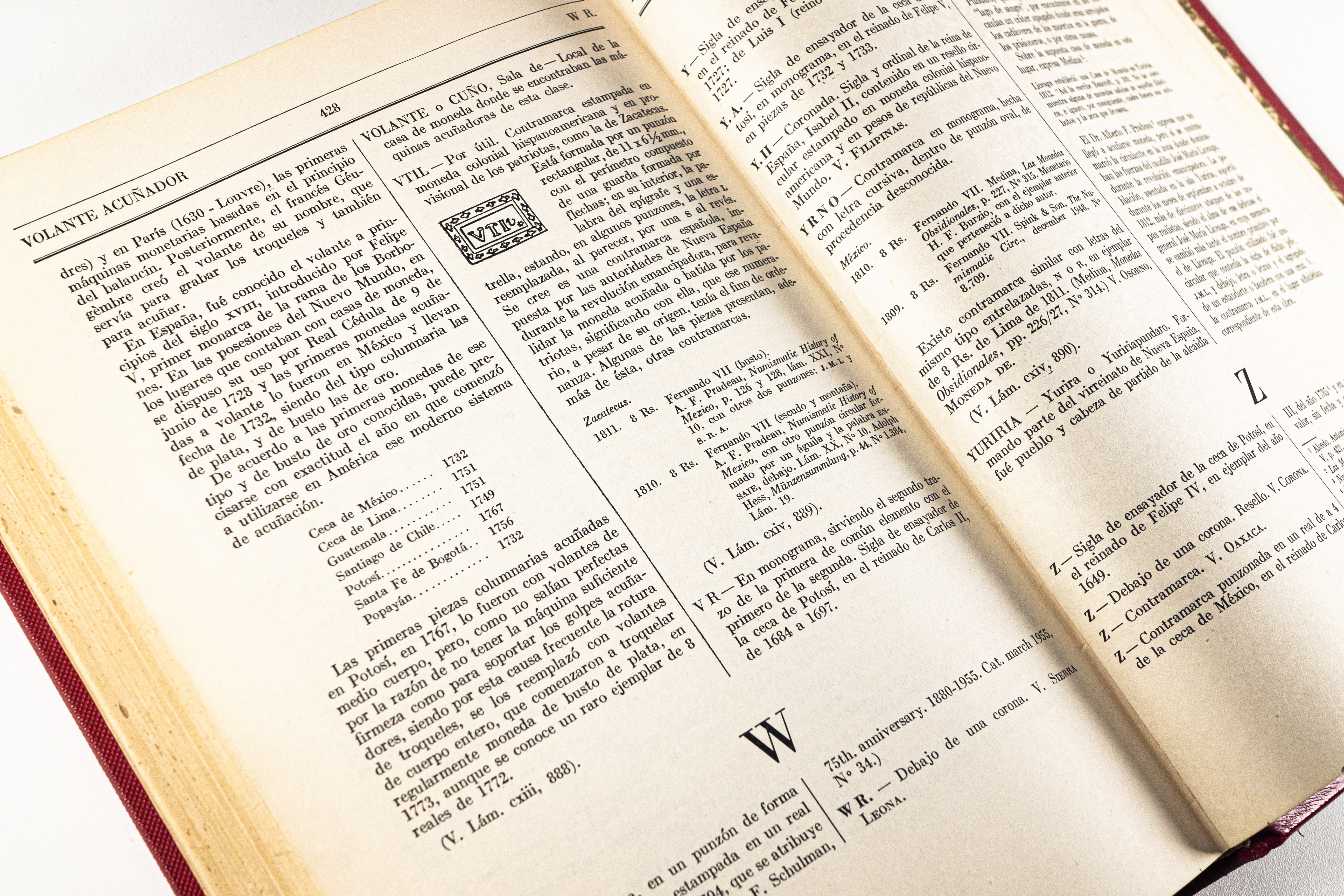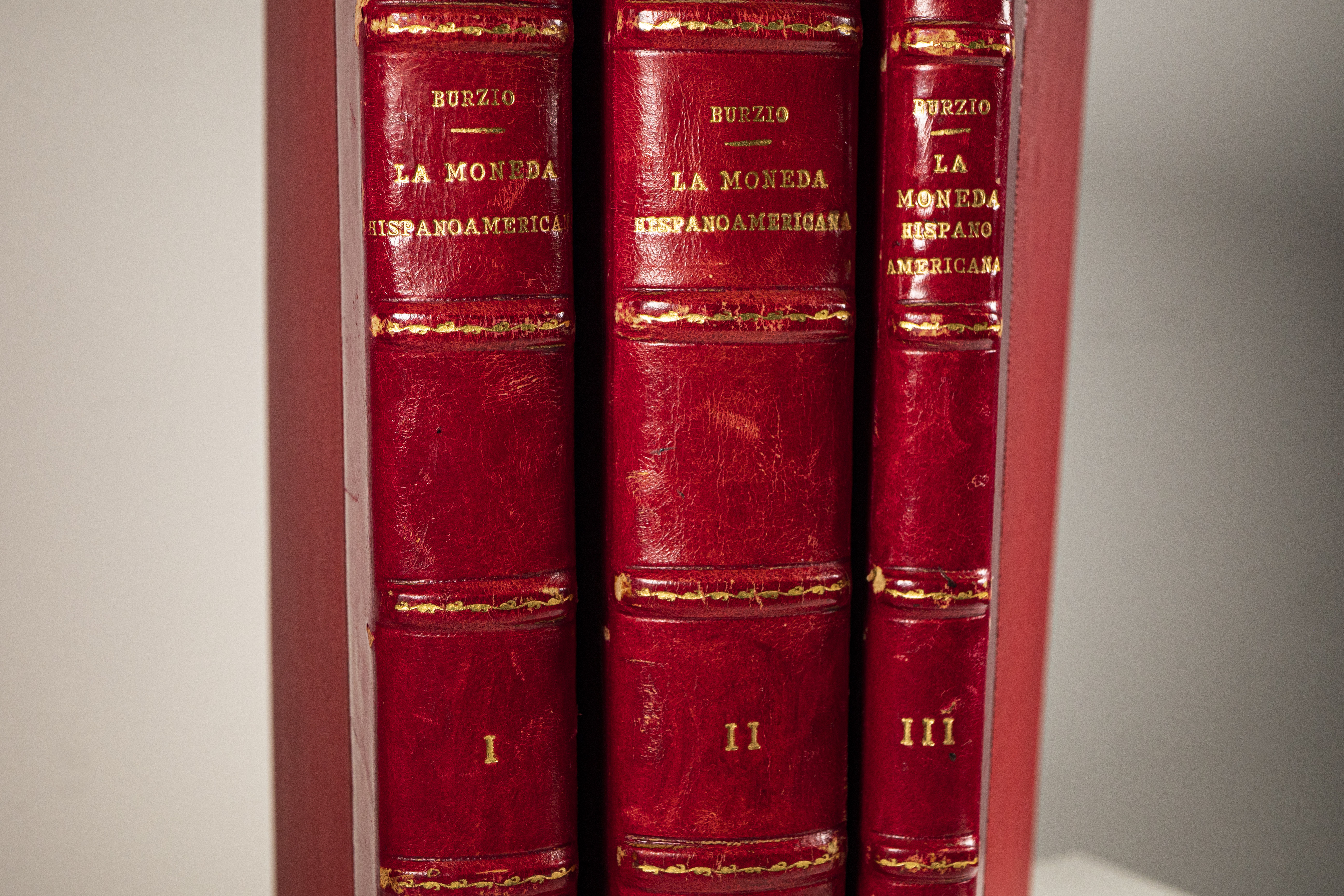 Burzio, Humberto F.: "Diccionario de la moneda Hispanoamericana". Obra fundamental de 3 volúmenes. (Santiago de Chile, 1958). Texto en español. Encuadernado en tapa dura con cubierta de tela y lomo en piel. Algunas marcas de uso y ligeras marcas de óxido en algunas página, pero mucho mejor conservado que la mayoría de ejemplares que salen al mercado. Es imprescindible un riguroso examen. SOLO ENVÍO A ESPAÑA PENÍNSULA. NO SE ADMITE DEVOLUCIÓN. Est...250,00.