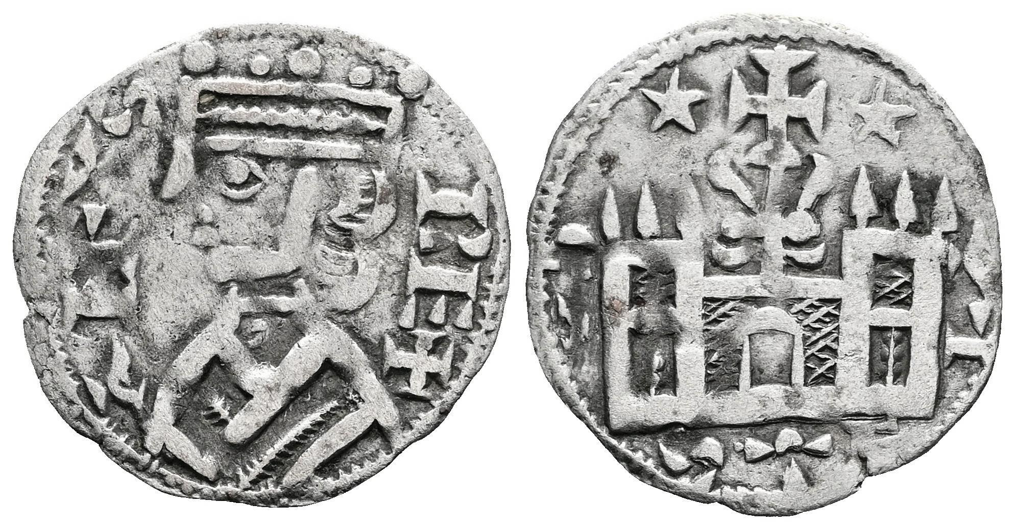 Reino de Castilla y León. Alfonso VIII (1158-1214). Dinero. (Bautista-312). Ve. 0,67 g. Estrellas sobre el castillo. MBC/MBC+. Est...50,00.