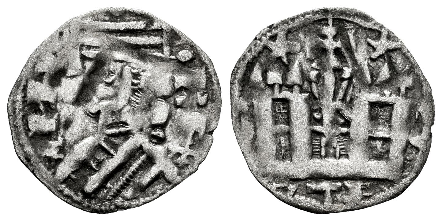 Reino de Castilla y León. Alfonso VIII (1158-1214). Dinero. (Bautista-312). Bi. 0,54 g. Estrellas sobre el castillo. MBC+. Est...45,00.