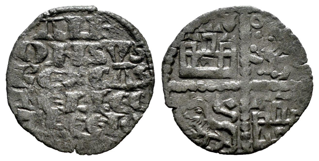 Reino de Castilla y León. Alfonso X (1252-1284). Dinero de seis líneas. Coruña. (Bautista-361.2). Ve. 0,66 g. Venera en el 1º cuadrante y roel en el 2º cuadrante. Escasa. BC+/MBC. Est...40,00.