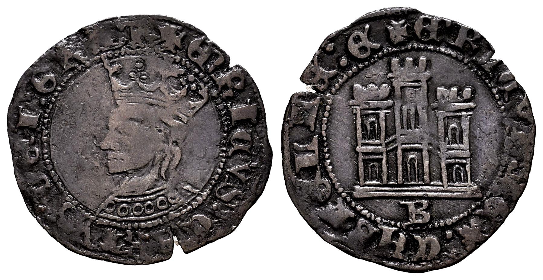 Reino de Castilla y León. Enrique IV (1454-1474). Dinero. Burgos. (Bautista-987). Ve. 1,29 g. B bajo el castillo. MBC-/MBC. Est...35,00.