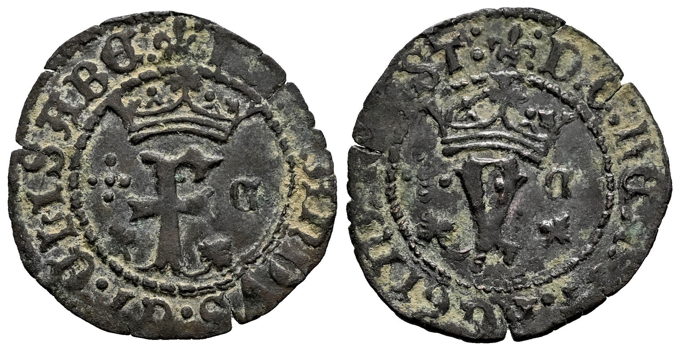 Fernando e Isabel (1474-1504). Blanca. Cuenca. (Cal-28). (Rs-518). Ae. 0,96 g. Con C gótica y cruz de puntos en anverso. MBC. Est...30,00.