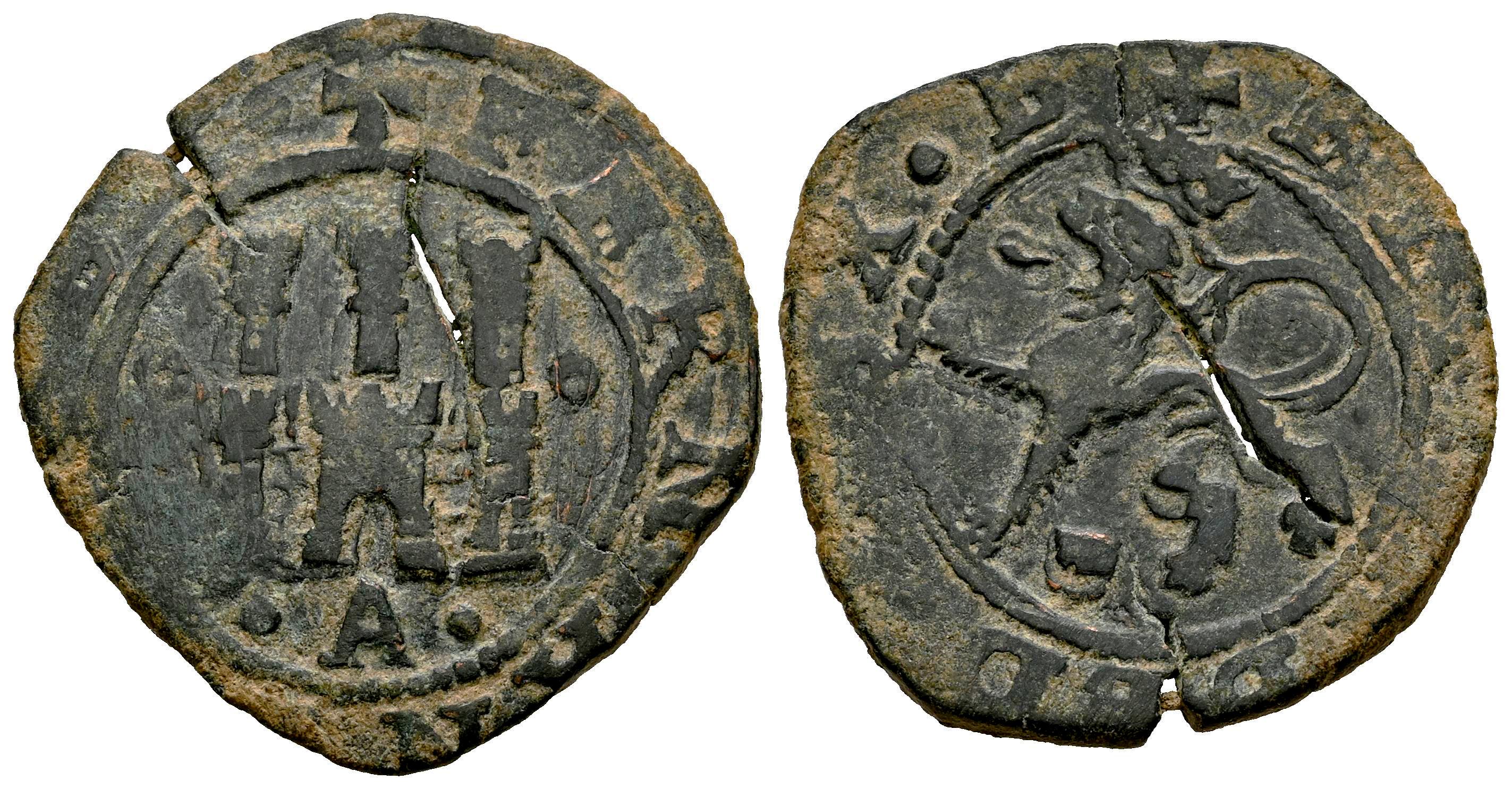 Fernando e Isabel (1474-1504). 2 maravedís. Coruña. A. (Cal-125). Ve. 4,78 g. A bajo el castillo. MBC. Est...40,00.