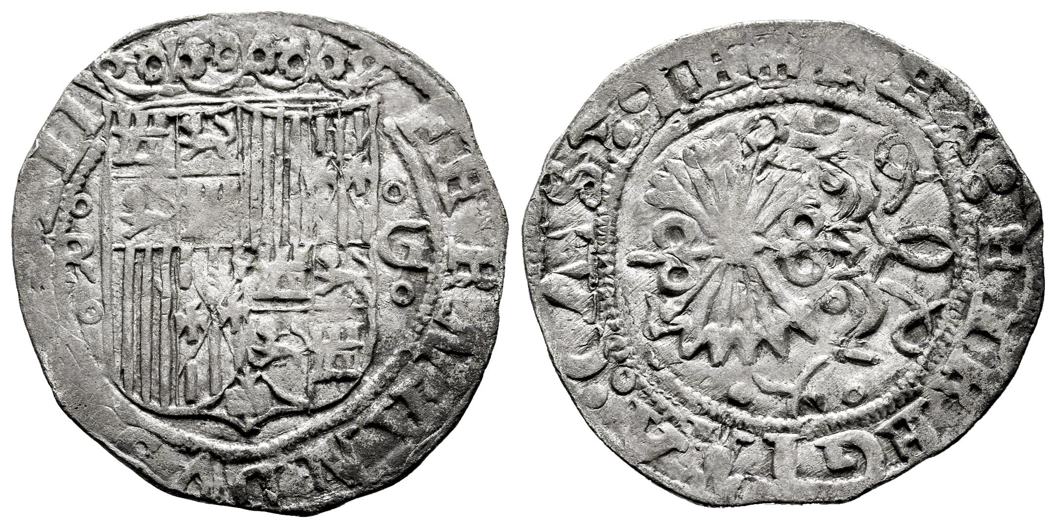 Fernando e Isabel (1474-1504). 1 real. Granada. R. (Cal-372). Ag. 3,23 g. Escudo entre R-G flanqueadas por roeles. Ligeras oxidaciones. MBC-. Est...65,00.
