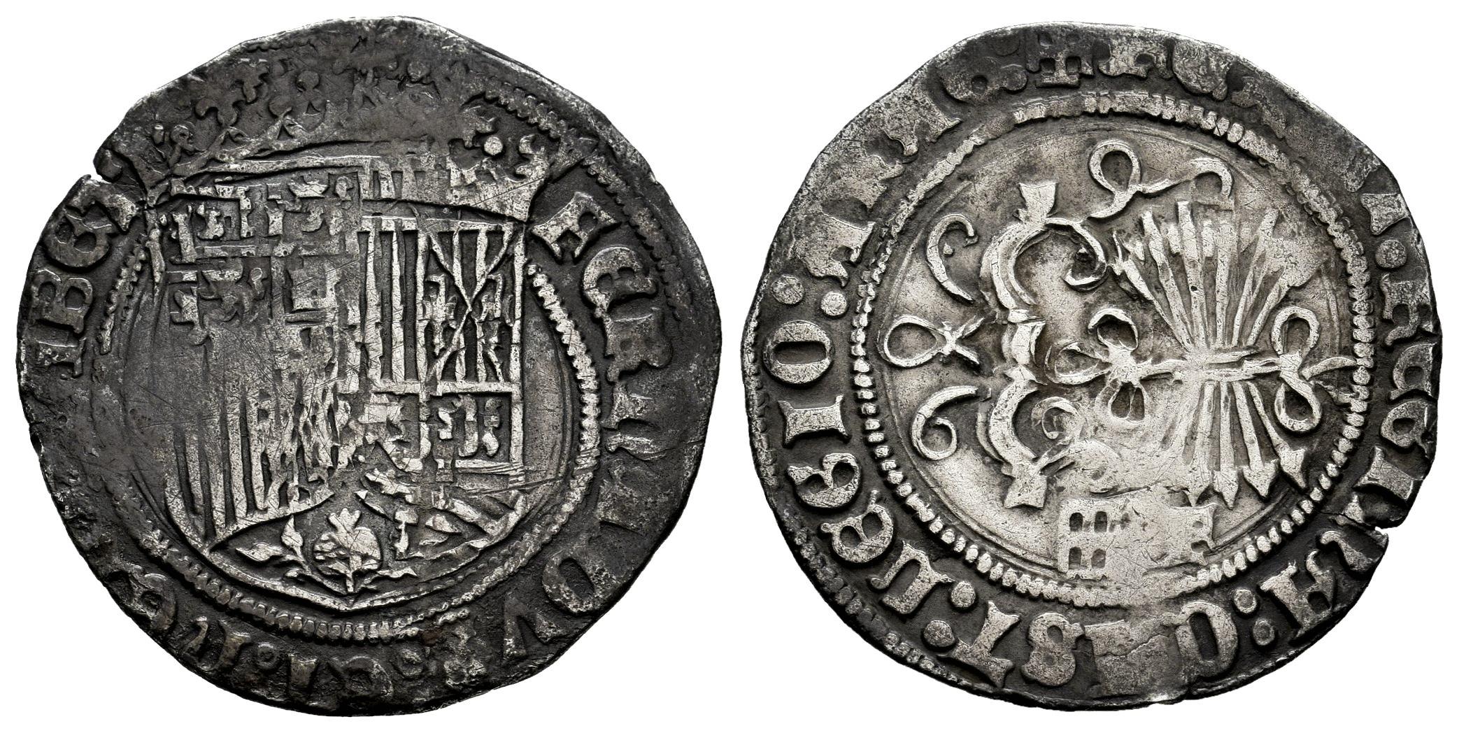 Fernando e Isabel (1474-1504). 1 real. Segovia. F. (Cal-391). (Bautista-1700). Ag. 3,22 g. Acueducto y F en reverso. Tono. MBC/MBC+. Est...180,00.