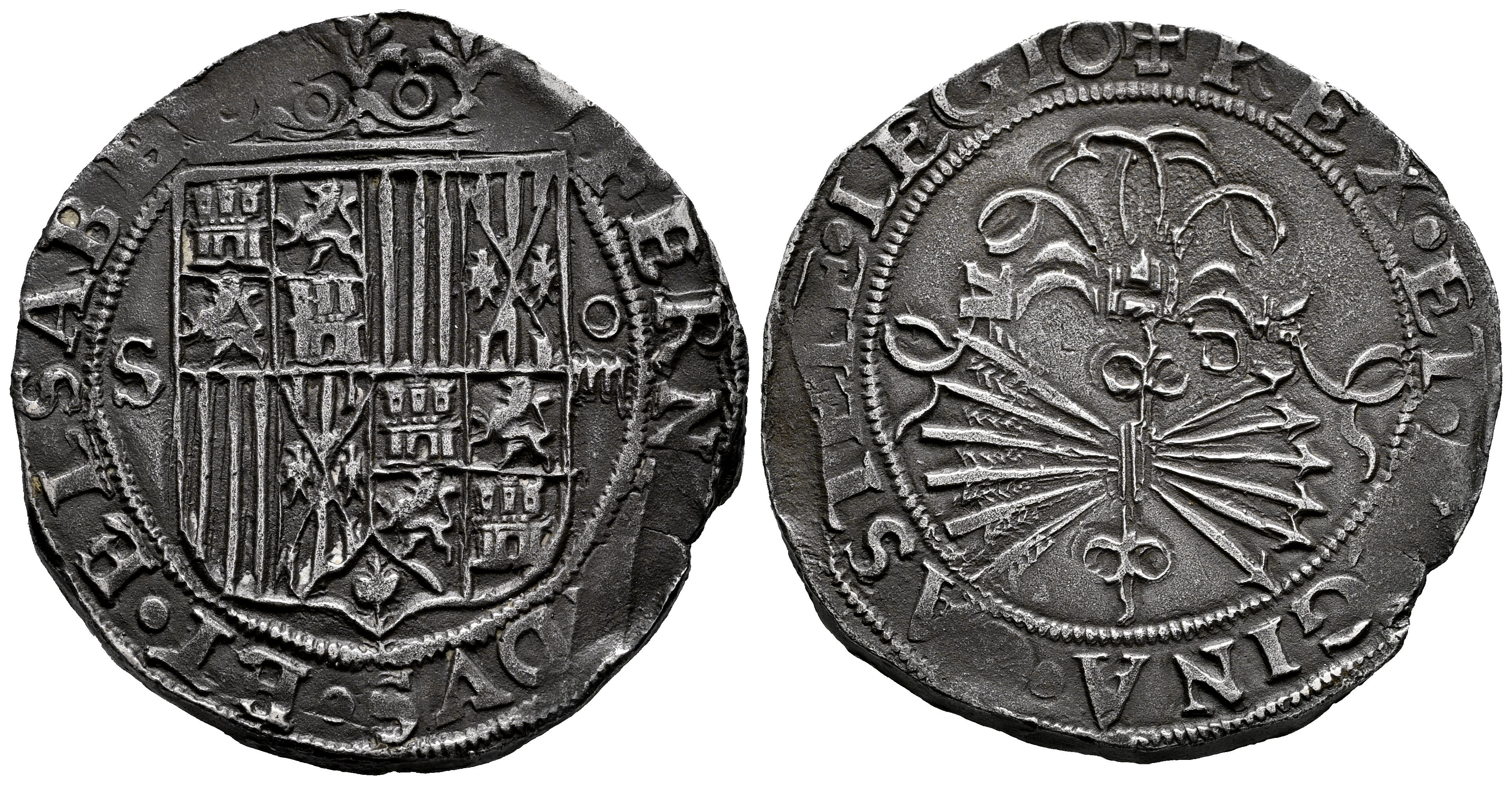 Fernando e Isabel (1474-1504). 4 reales. Sevilla. (Cal-560). Ag. 12,03 g. Pátina oscura. Algunos vanos pero buena acuñación. Ex Áureo&Calicó (25/05/2011), lote 214. MBC+. Est...400,00.