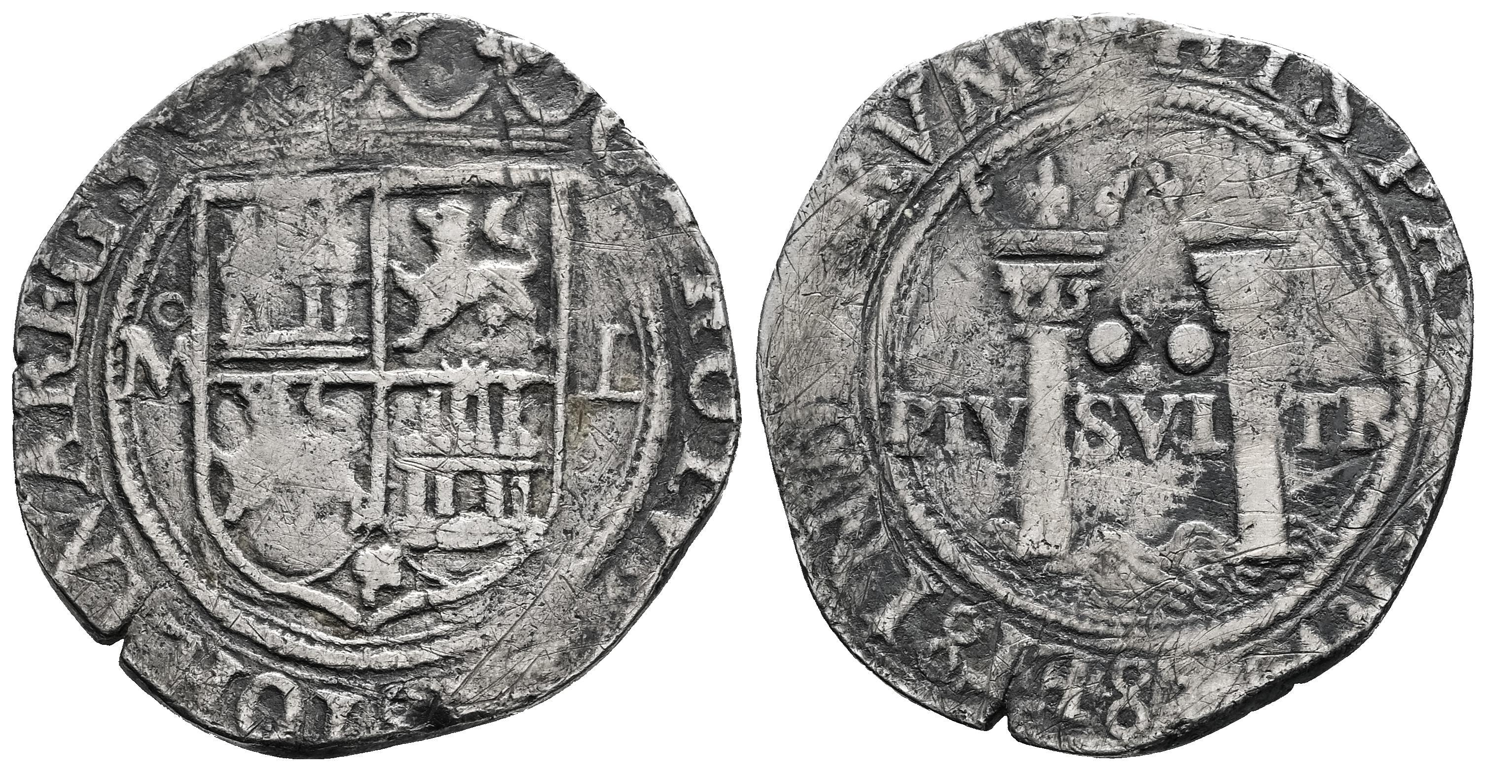 Juana y Carlos (1504-1555). 2 reales. ND (1548-1556). México. L. (Cal-101). Ag. 6,35 g. Escudo entre M - L. MBC-. Est...120,00.