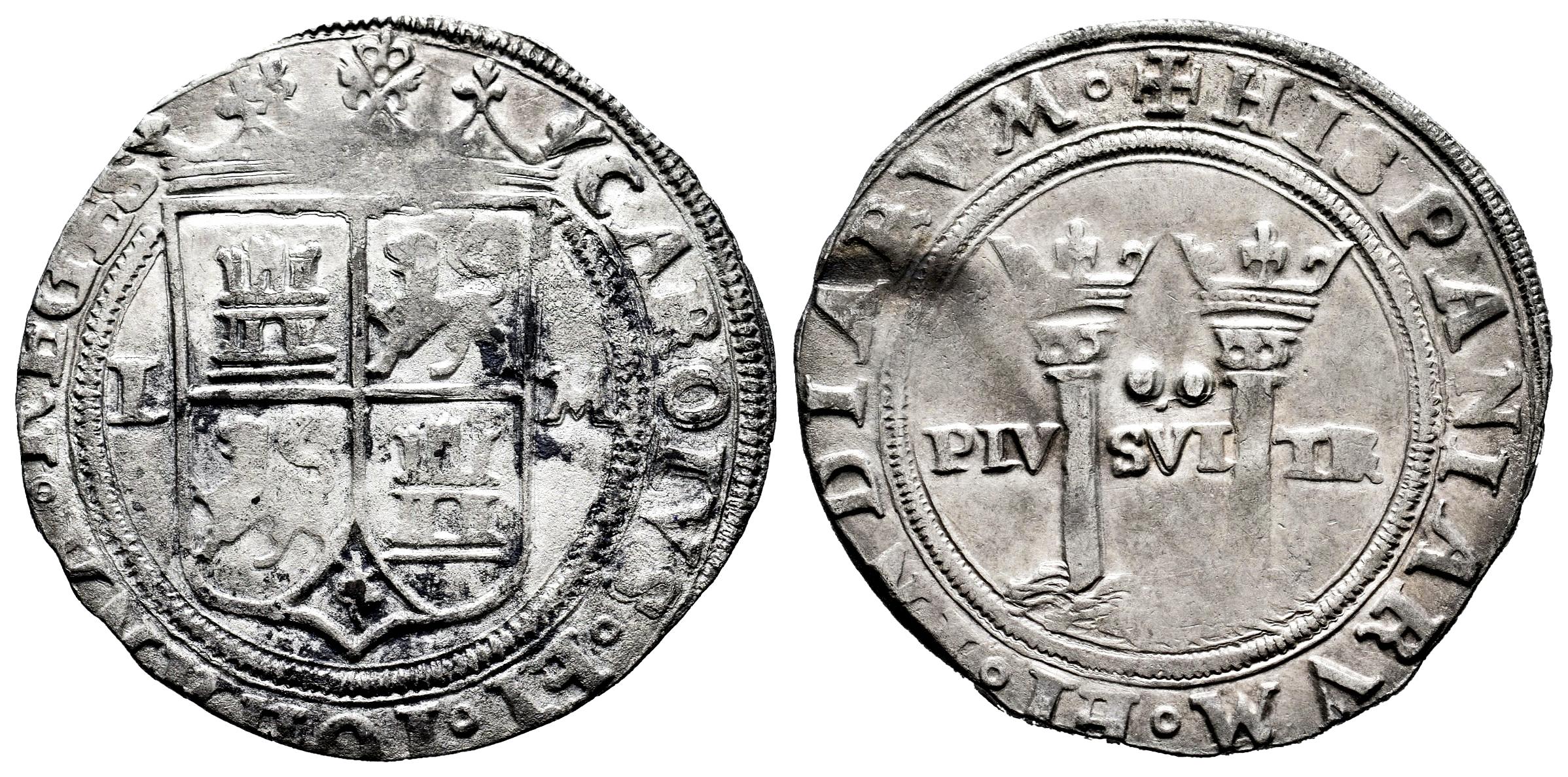Juana y Carlos (1504-1555). 2 reales. ND (1548-1556). México. L. (Cal-101). Ag. 6,60 g. Oxidaciones superficiales en el anverso. MBC/MBC+. Est...300,00.