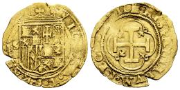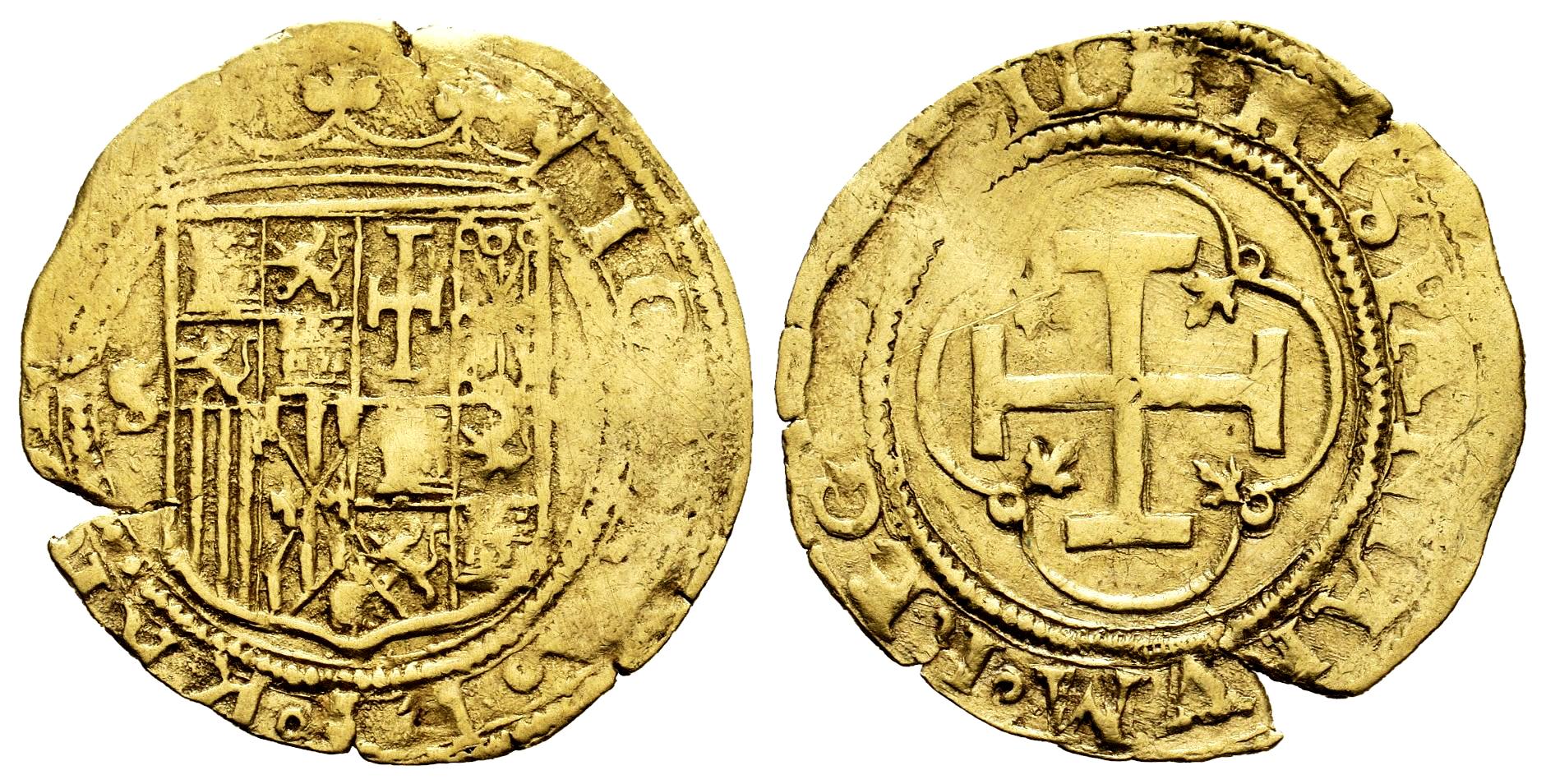 Juana y Carlos (1504-1555). 1 escudo. ND (ca. 1543). Sevilla. (Cal-196). (Tauler-24a). Anv.: IO(ANN)A ◦ ET ◦ KAROL .... Rev.: HISPANIARVM ◦ REG ... CIL. Au. 3,26 g. Escudo entre S y (✷). MBC-/MBC. Est...1200,00.
