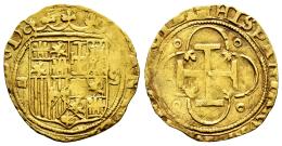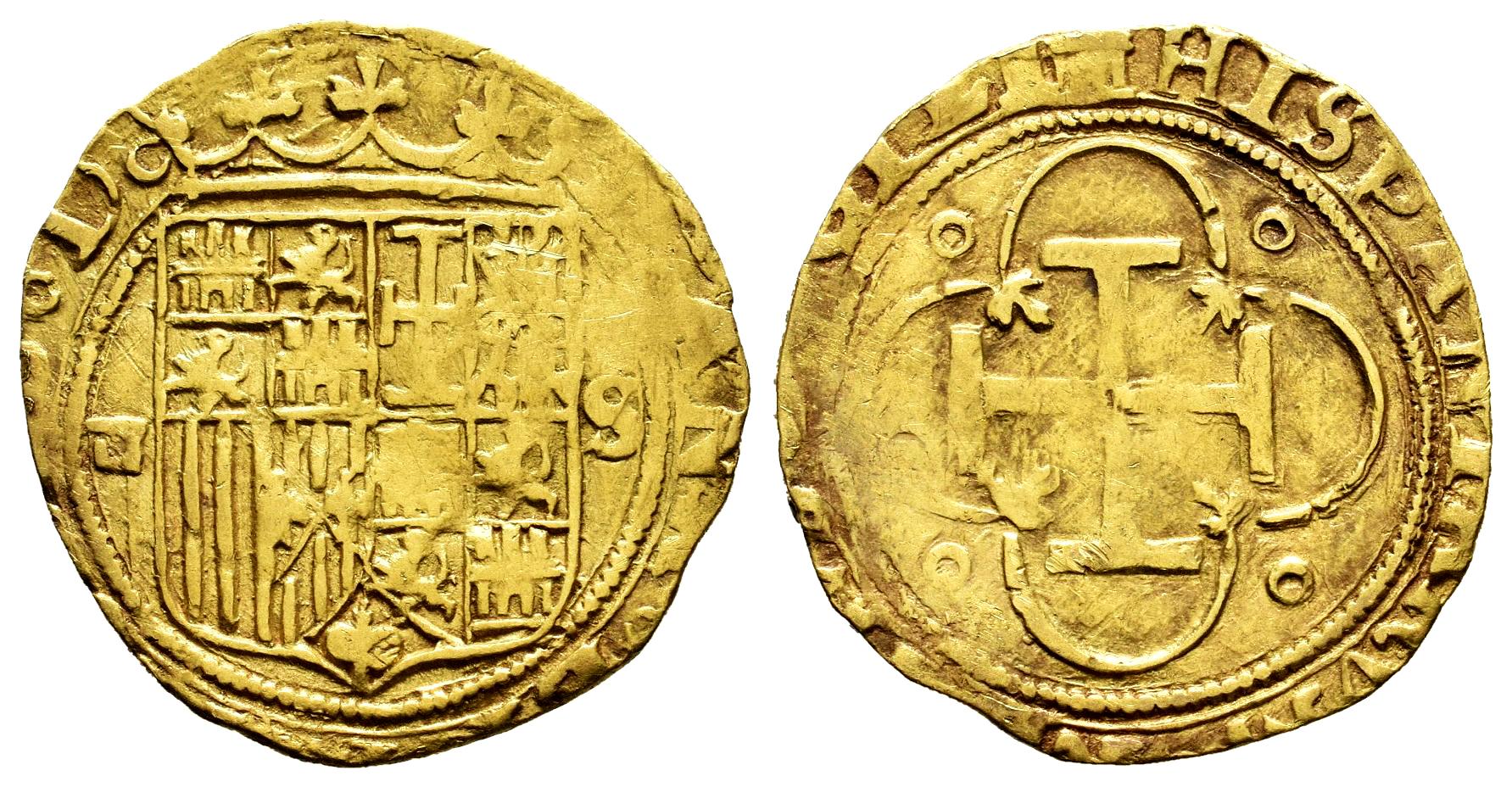 Juana y Carlos (1504-1555). 1 escudo. ND (ca. 1550). Sevilla. (Cal-199). (Tauler-tipo 22). Au. 3,30 g. Escudo entre d cuadrada y S. MBC. Est...1200,00.