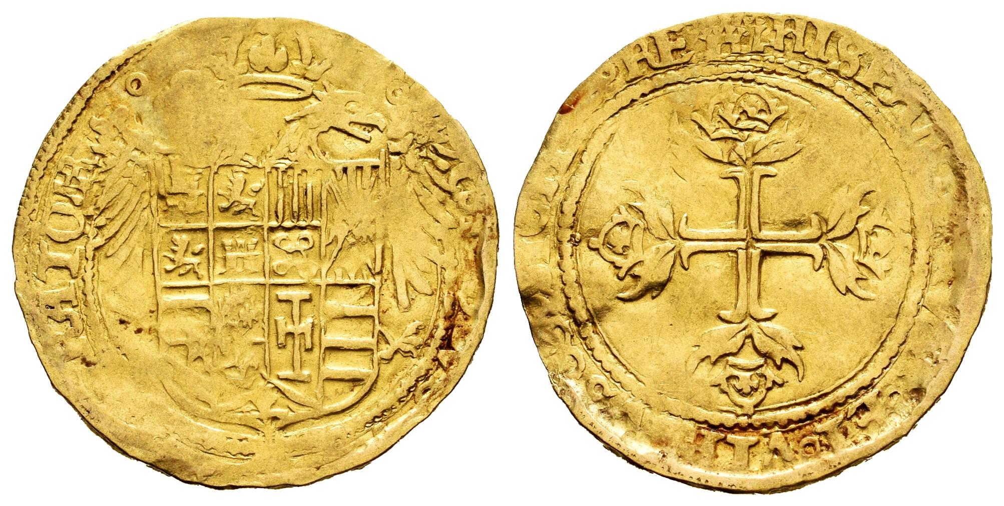 Carlos I (1516-1556). 1 escudo. ND (1535). Barcelona. (Cal-120). Au. 3,29 g. Acuñada para la expedición contra Túnez. Ligeramente alabeada. Rara. MBC+. Est...800,00.