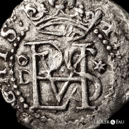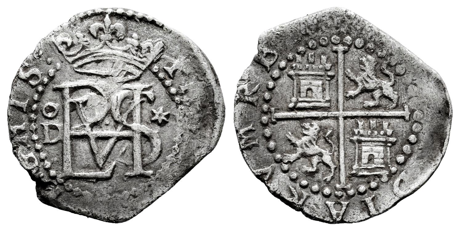 Felipe II (1556-1598). 1/2 real. ND (1577-1588). Lima. D (Diego de la Torre). (Cal-120). Ag. 1,47 g. oD a la izquierda, * a la derecha. Escasa. MBC+. Est...150,00.