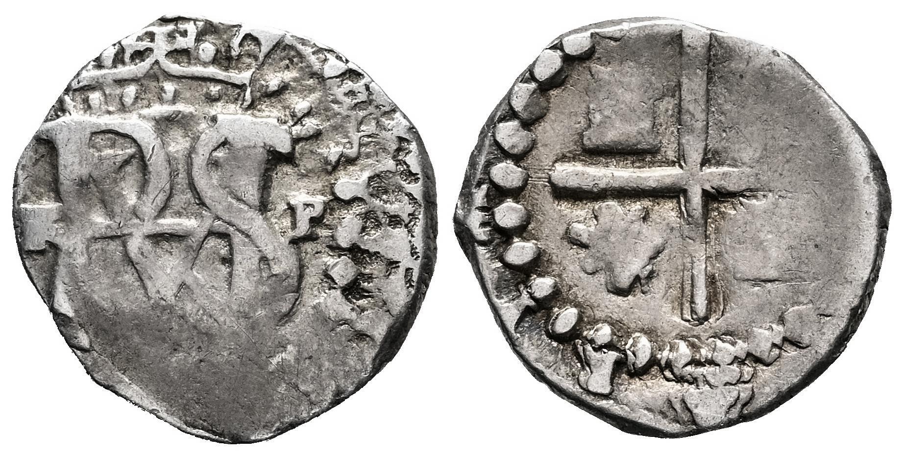 Felipe II (1556-1598). 1/2 real. ND (1574-1576). Potosí. R. (Cal-136). (CJ-5.1.2). Ag. 1,69 g. Monograma entre R y P. Escasa. MBC. Est...150,00.