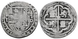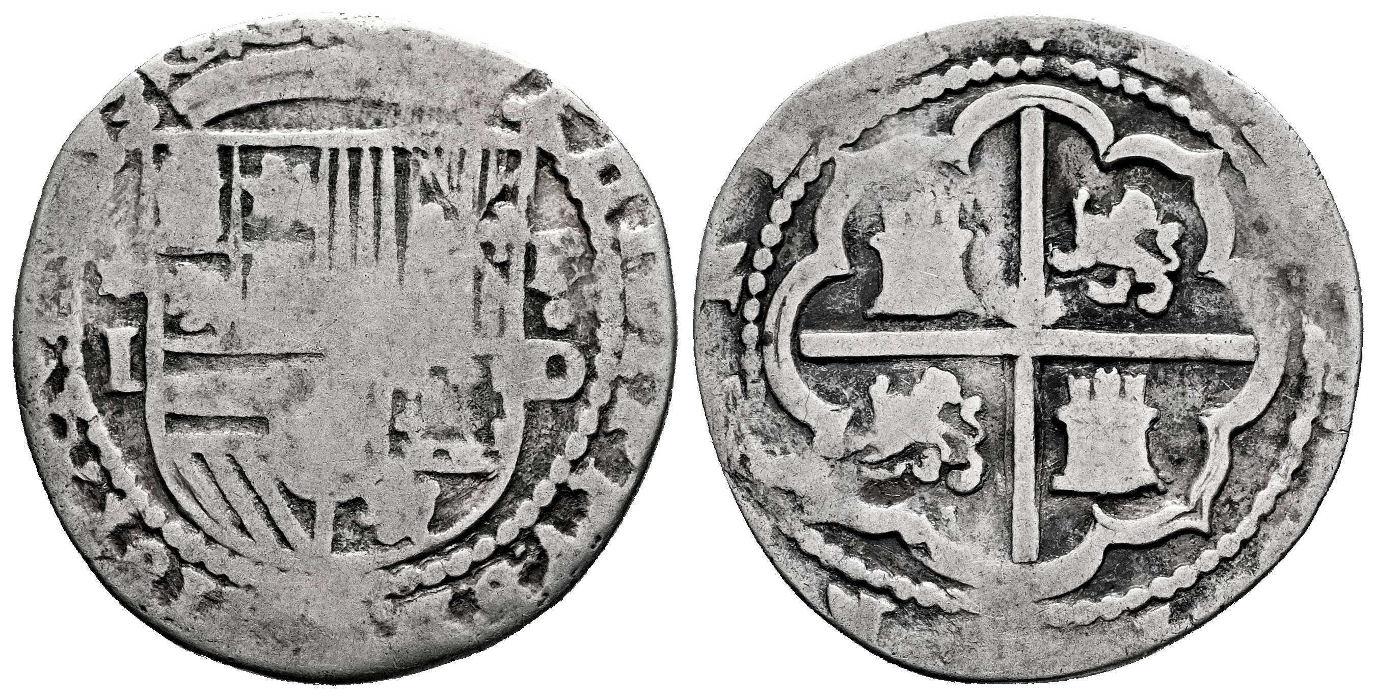 Felipe II (1556-1598). 1 real. ND (1577-1588). Lima. D (Diego de la Torre). (Cal-212). Ag. 2,97 g. Escudo entre *-I a la izquierda y P-Do a la derecha. Rara. BC+. Est...120,00.