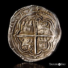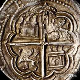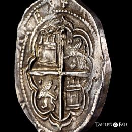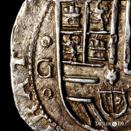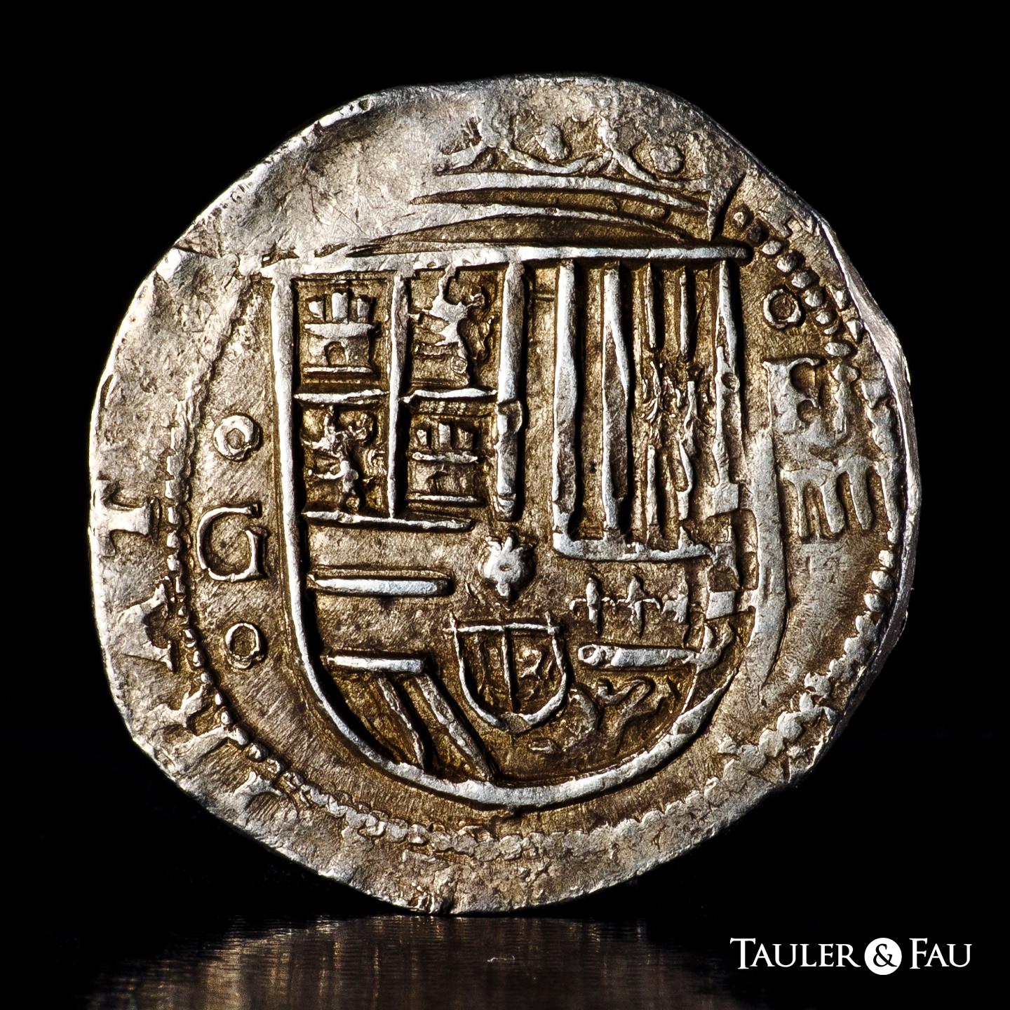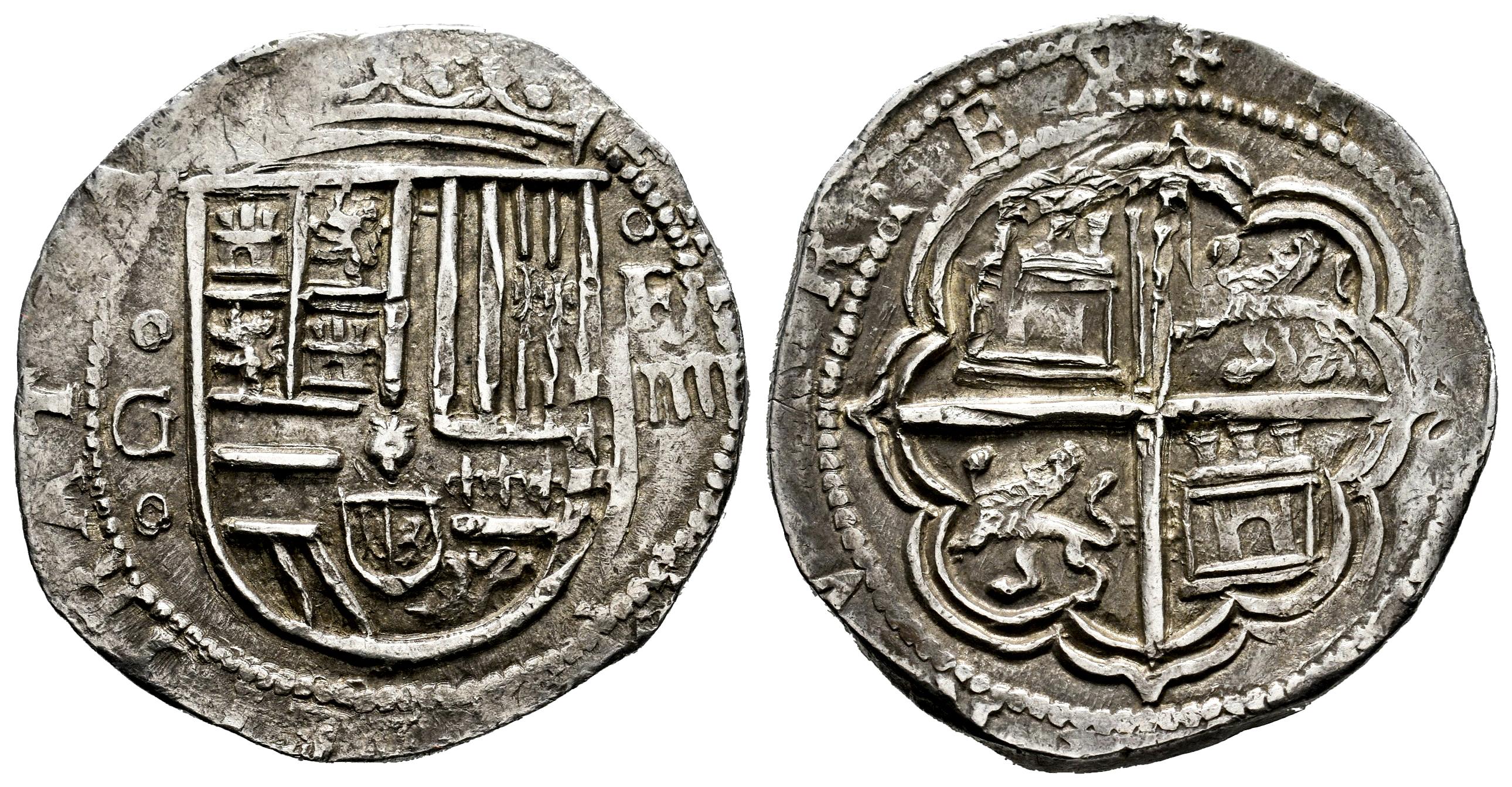 Felipe II (1556-1598). 4 reales. ND. Granada. F. (Cal-484). Anv.: Escudo entre G acotado por roeles verticalmente y F sobre valor IIII, ambos superados por roel. Ag. 13,67 g. Atractiva. MBC+. Est...350,00.