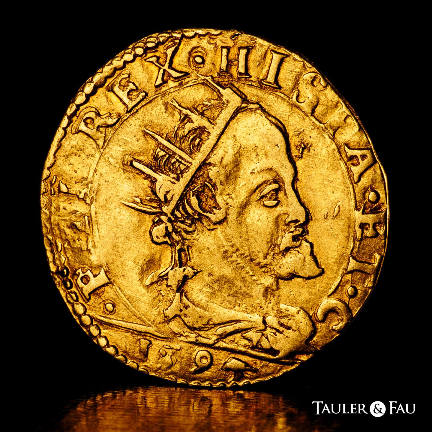 Felipe II (1556-1598). 1 Doppia. 1594. Milán. (Tauler-323). (Fr-716). (Mir-Mil 301/12). Au. 6,49 g. Bonito color. Rara. MBC+. Est...1500,00.